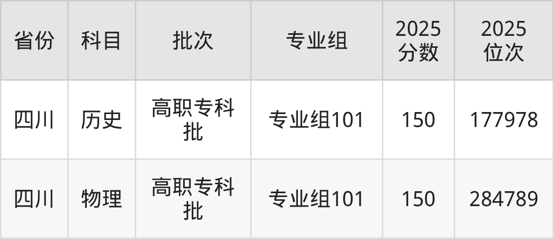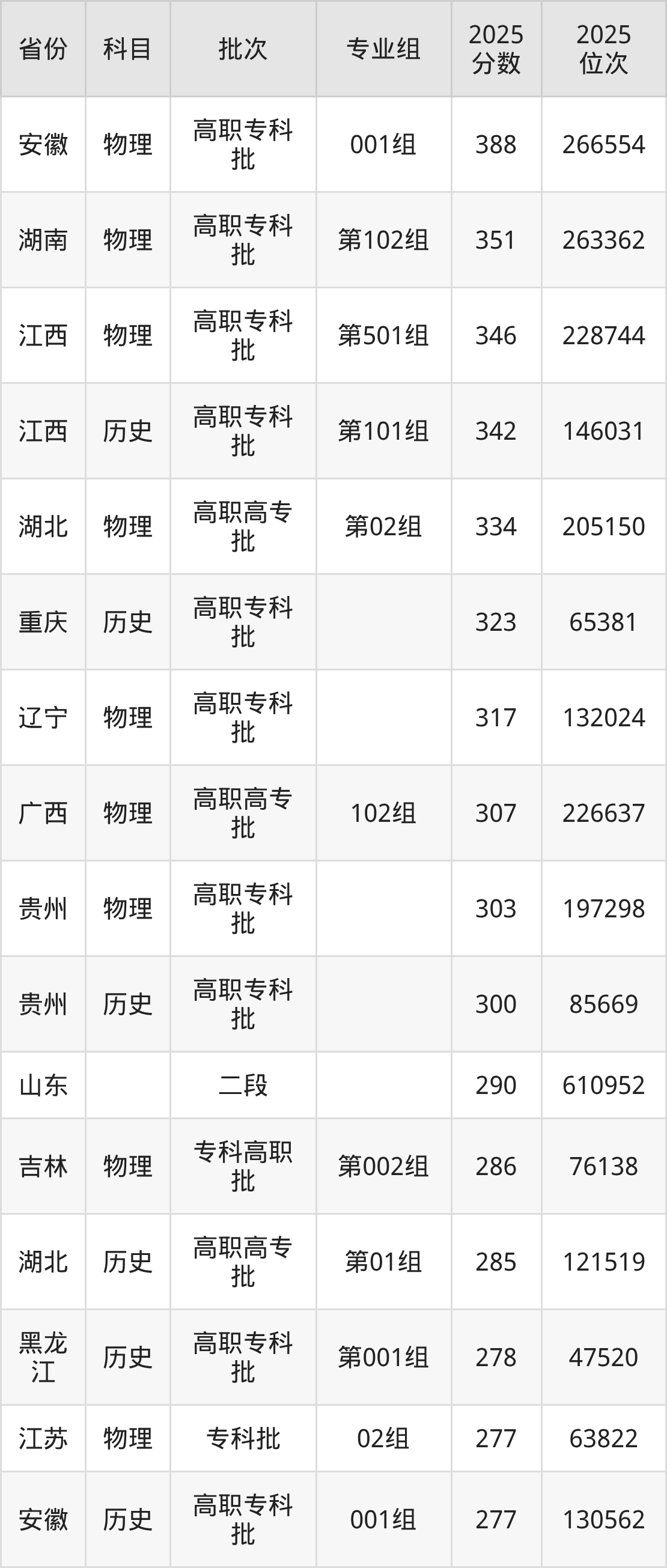 2025年四川科技职业学院全国录取分数线150分到388分,录取最高在安徽(001组)、录取最低在四川(专业组101)。
