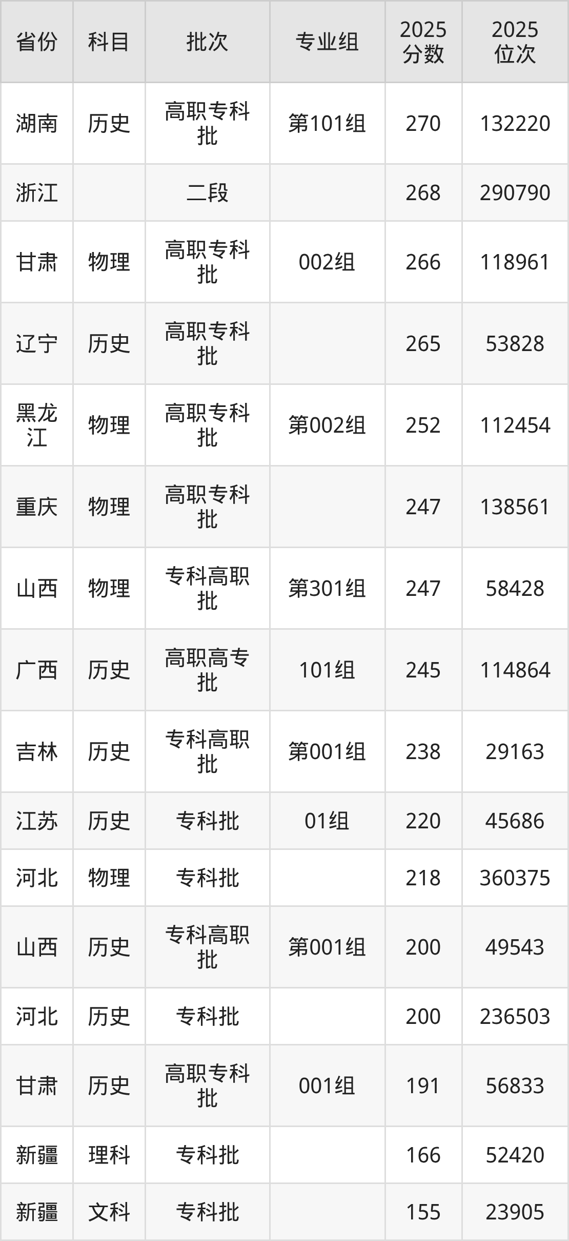 下面是2025年四川科技职业学院在全国各省录取最低分数据及位次,各位考生也可作为一个参考。