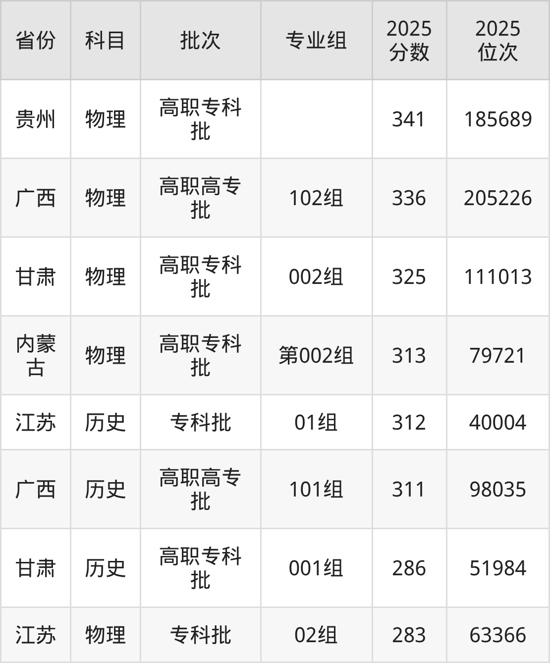 2025年河南测绘职业学院全国录取分数线283分到420分,录取最高在浙江、录取最低在江苏(02组)。