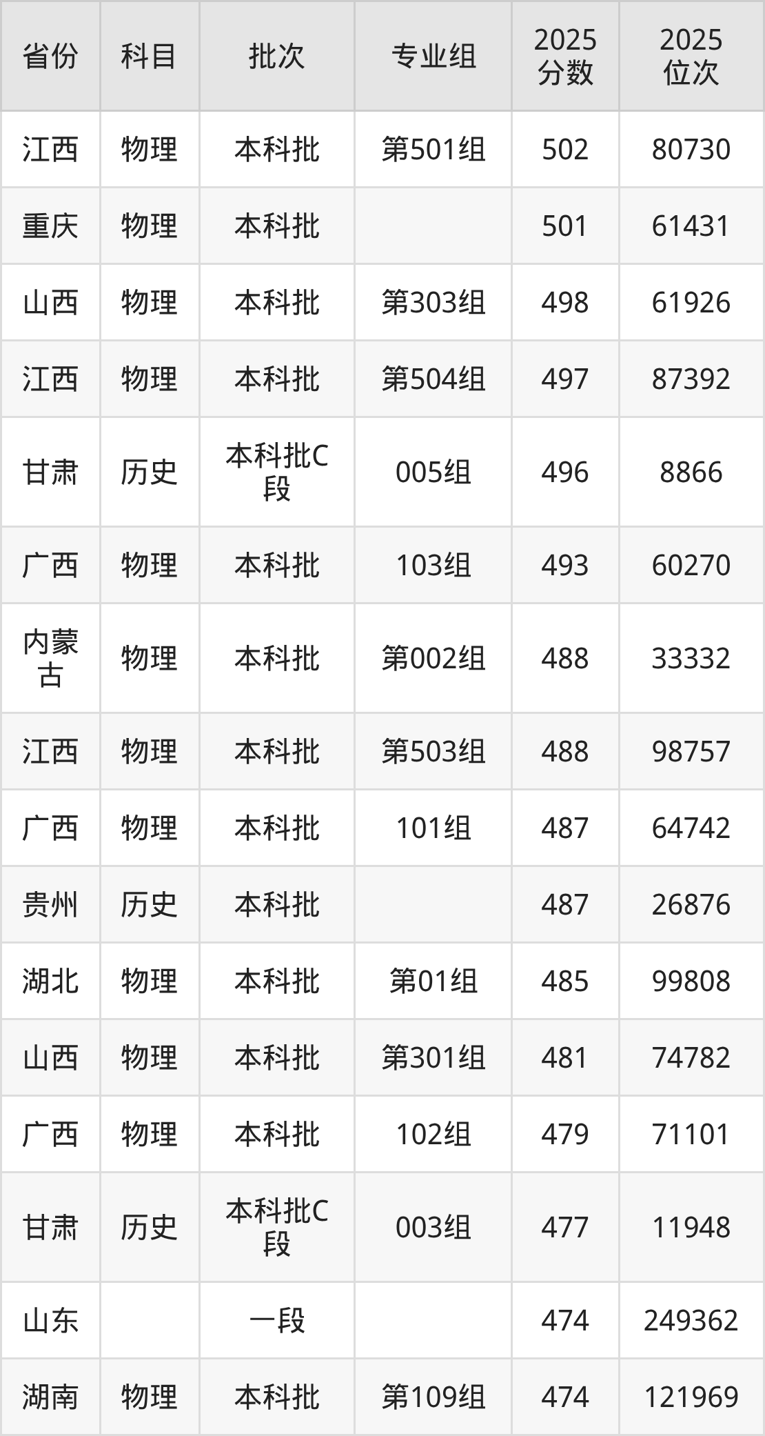参考2025年山东省高考招录数据,按照分数线从高到低依次为大家展示遵义师范学院各个专业录取分数线。