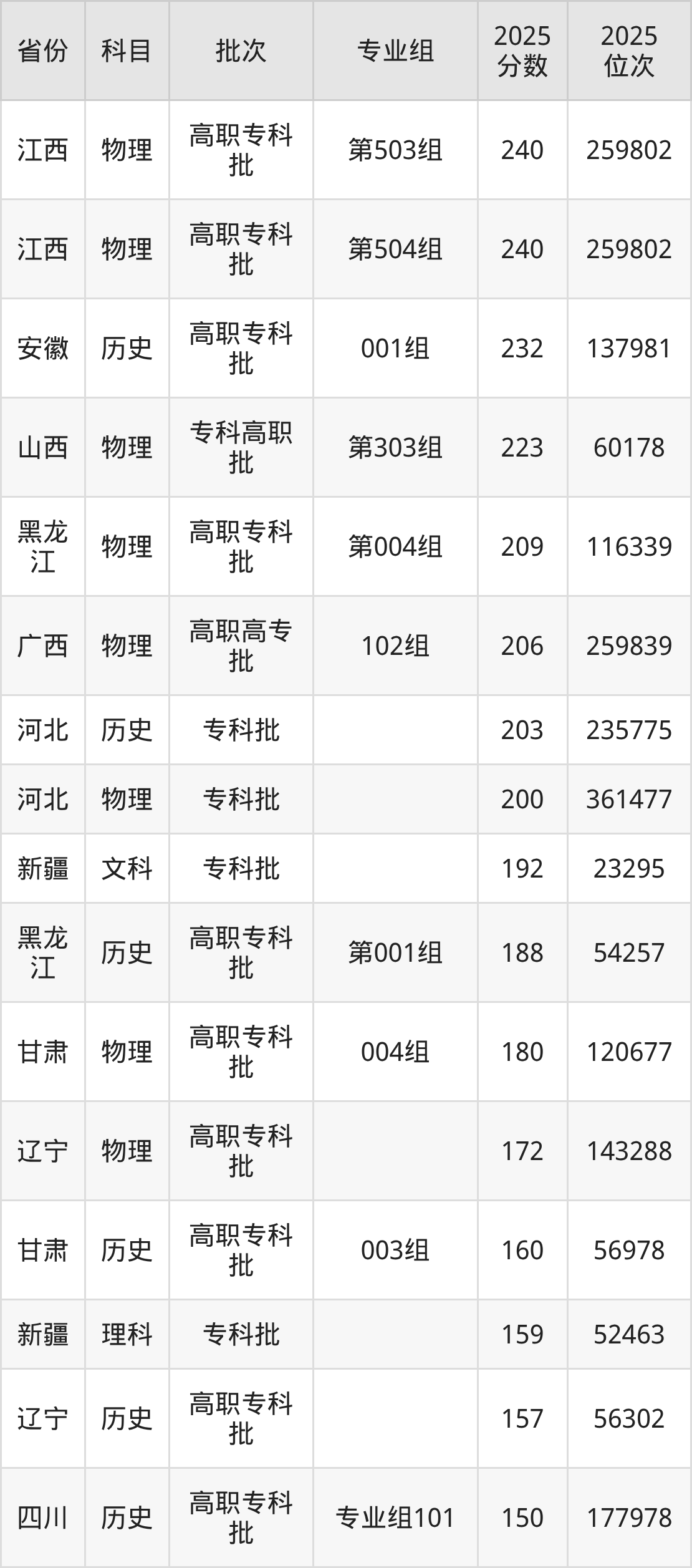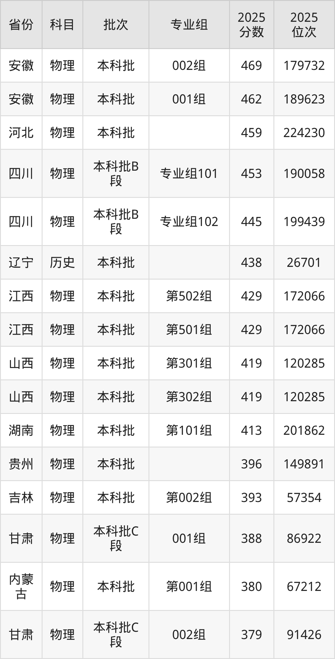 2025年辽宁理工职业大学全国录取分数线150分到469分,录取最高在安徽(002组)、录取最低在四川(专业组101)。