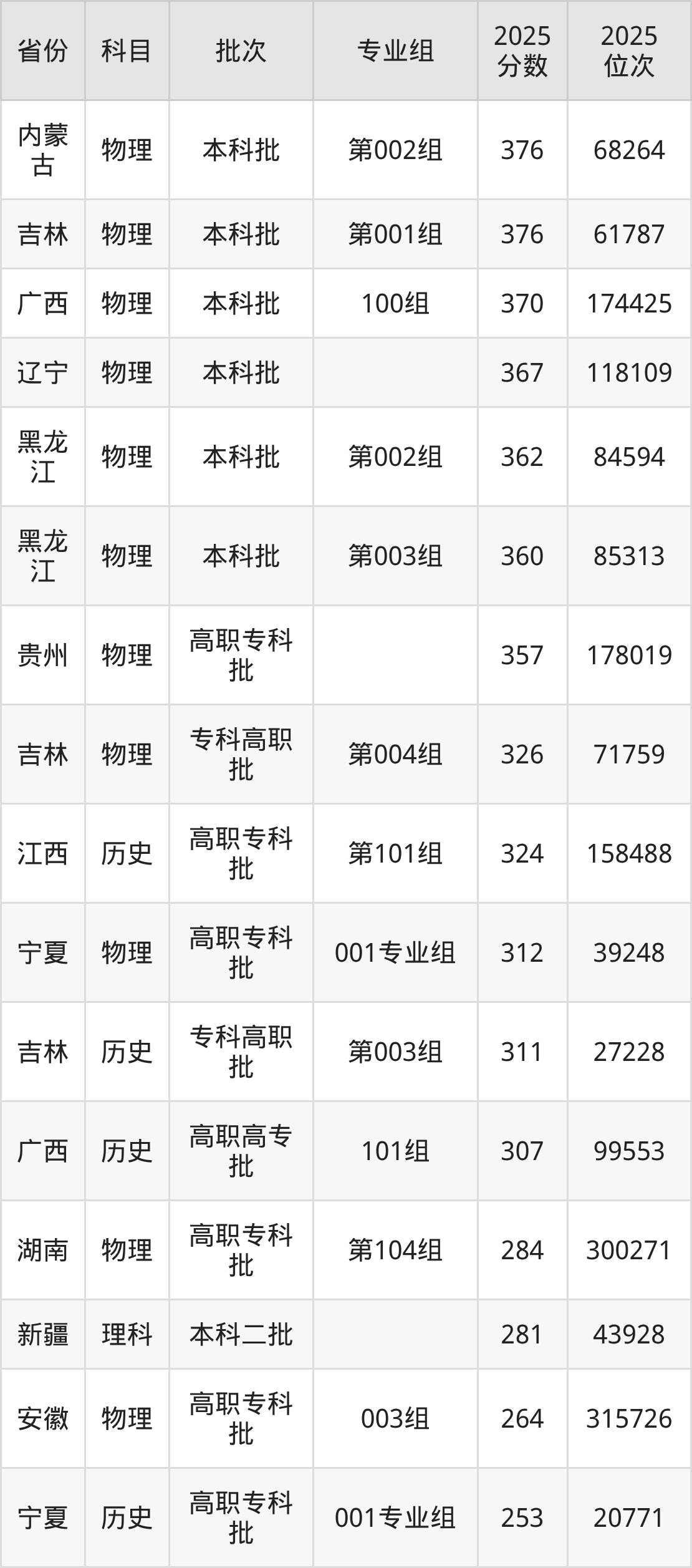 下面是2025年辽宁理工职业大学在全国各省录取最低分数据及位次,各位考生也可作为一个参考。