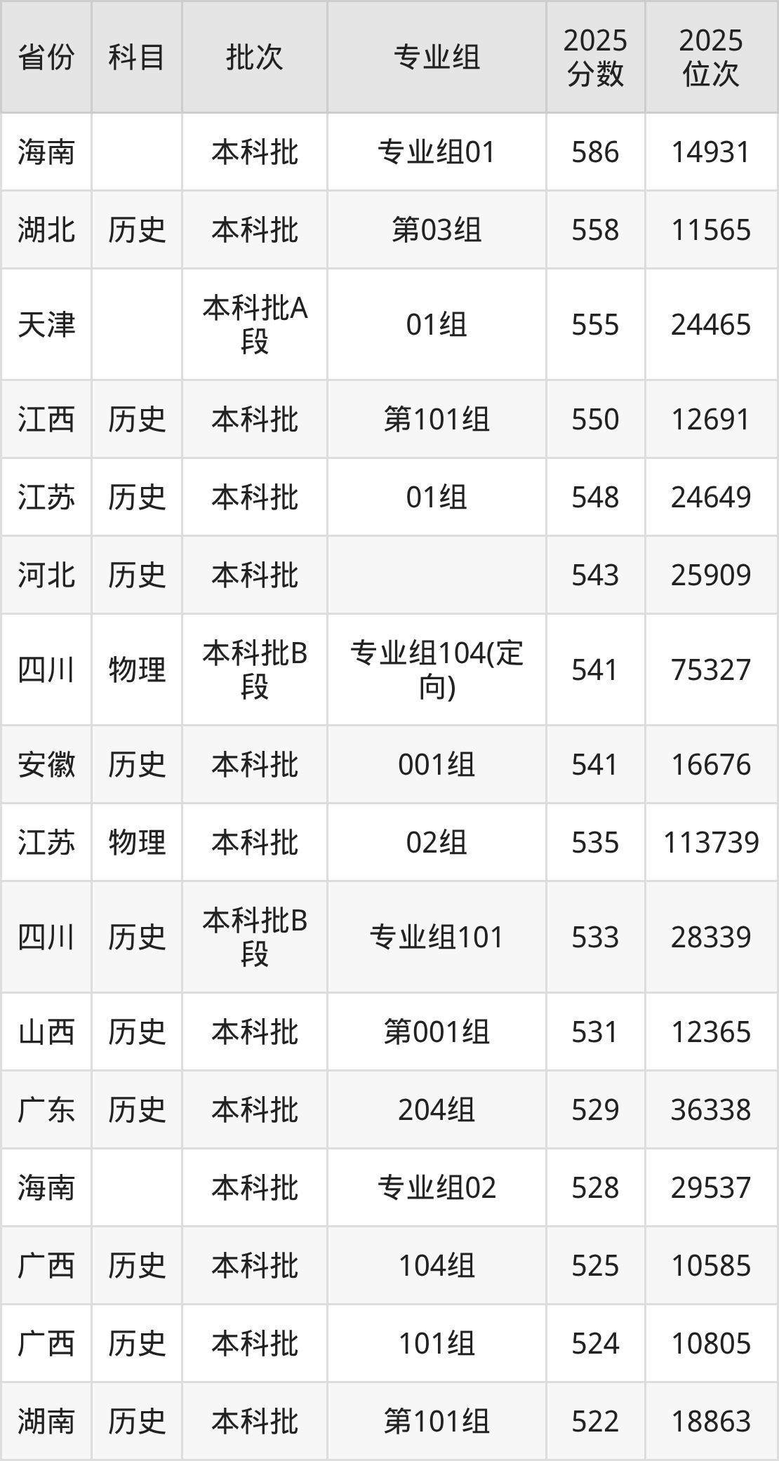 3、法学(涉外法治方向):555分、位次74247名;