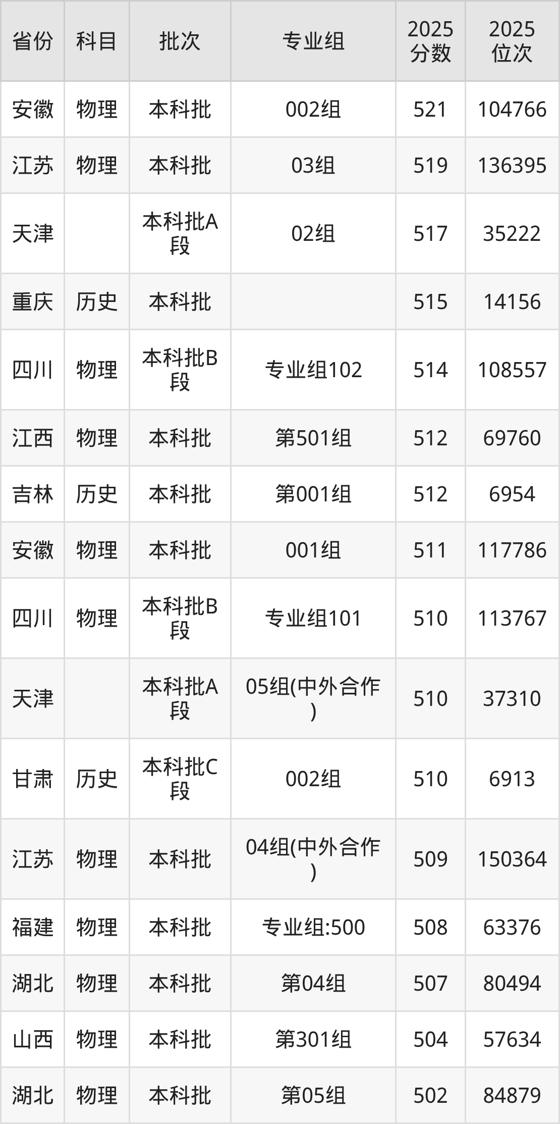 32、车辆工程:519分、位次142372名;