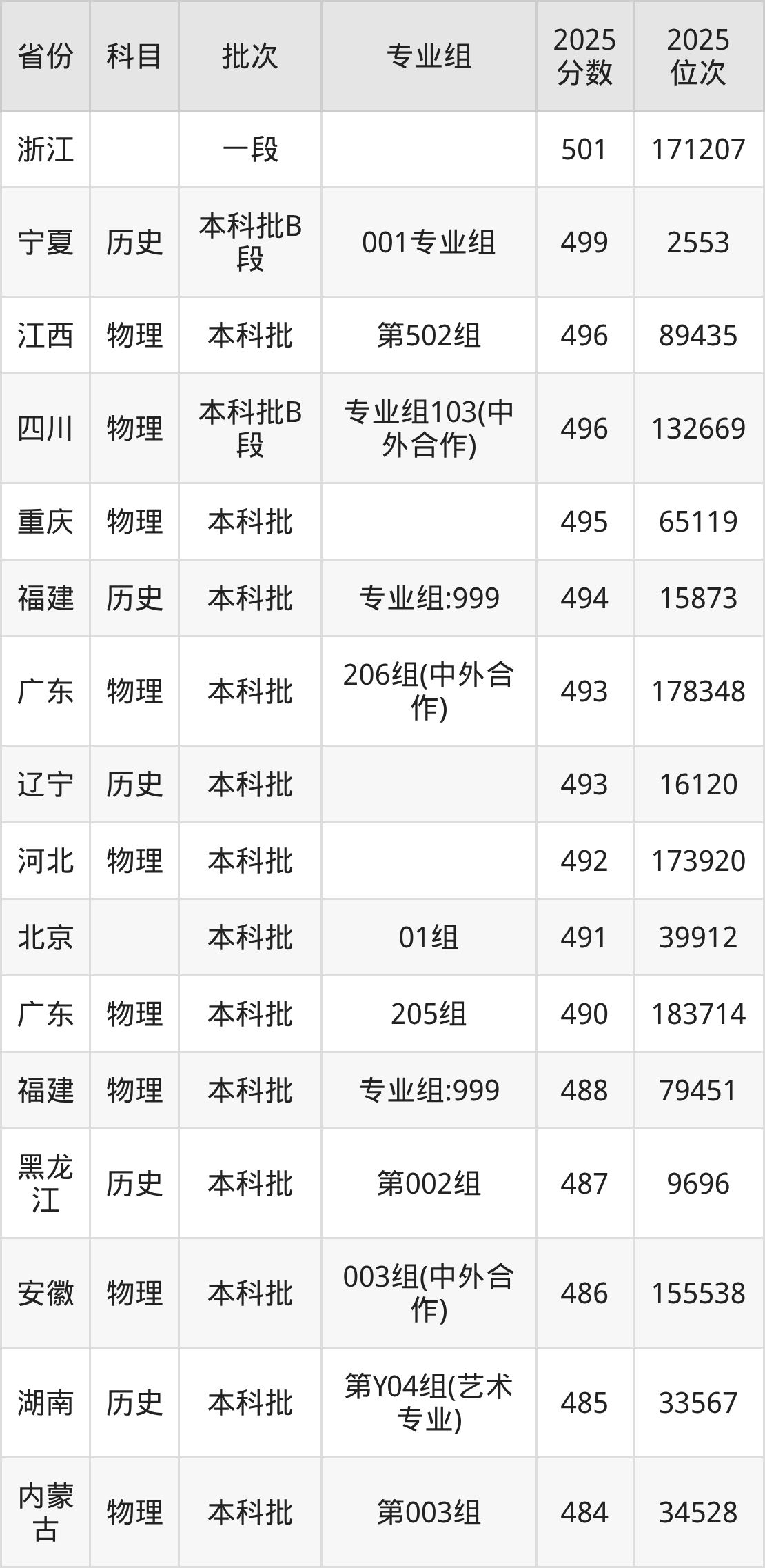 56、土木工程(数智轨道交通方向):487分、位次216908名;