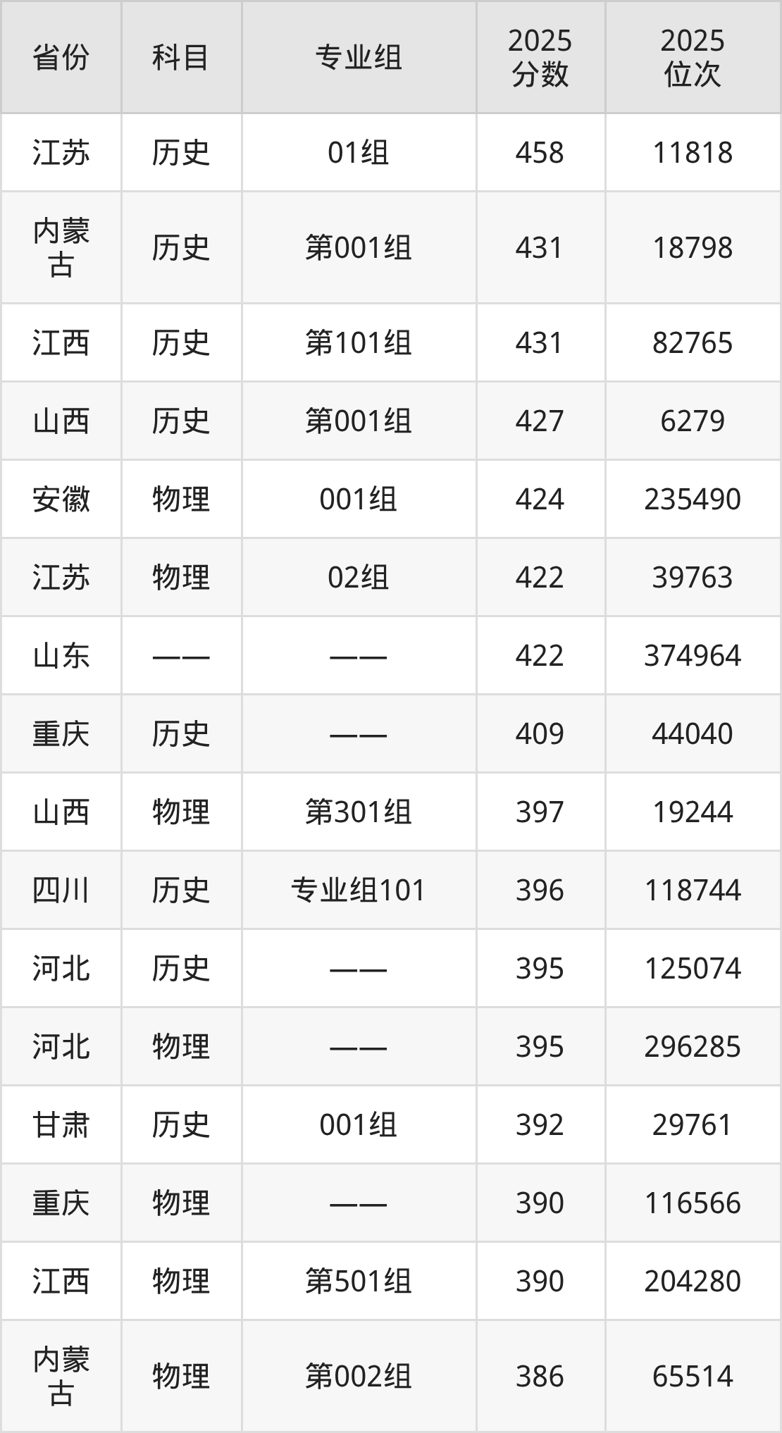 2025年陕西财经职业技术学院全国录取分数线232分到458分,录取最高在江苏(历史类01组)、录取最低在新疆(理科)。