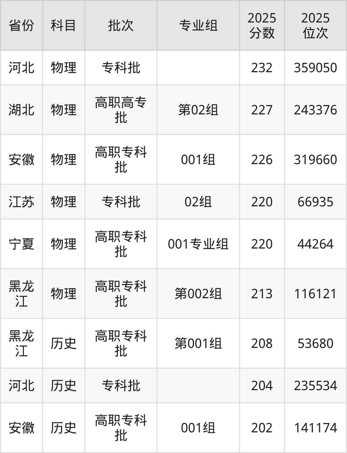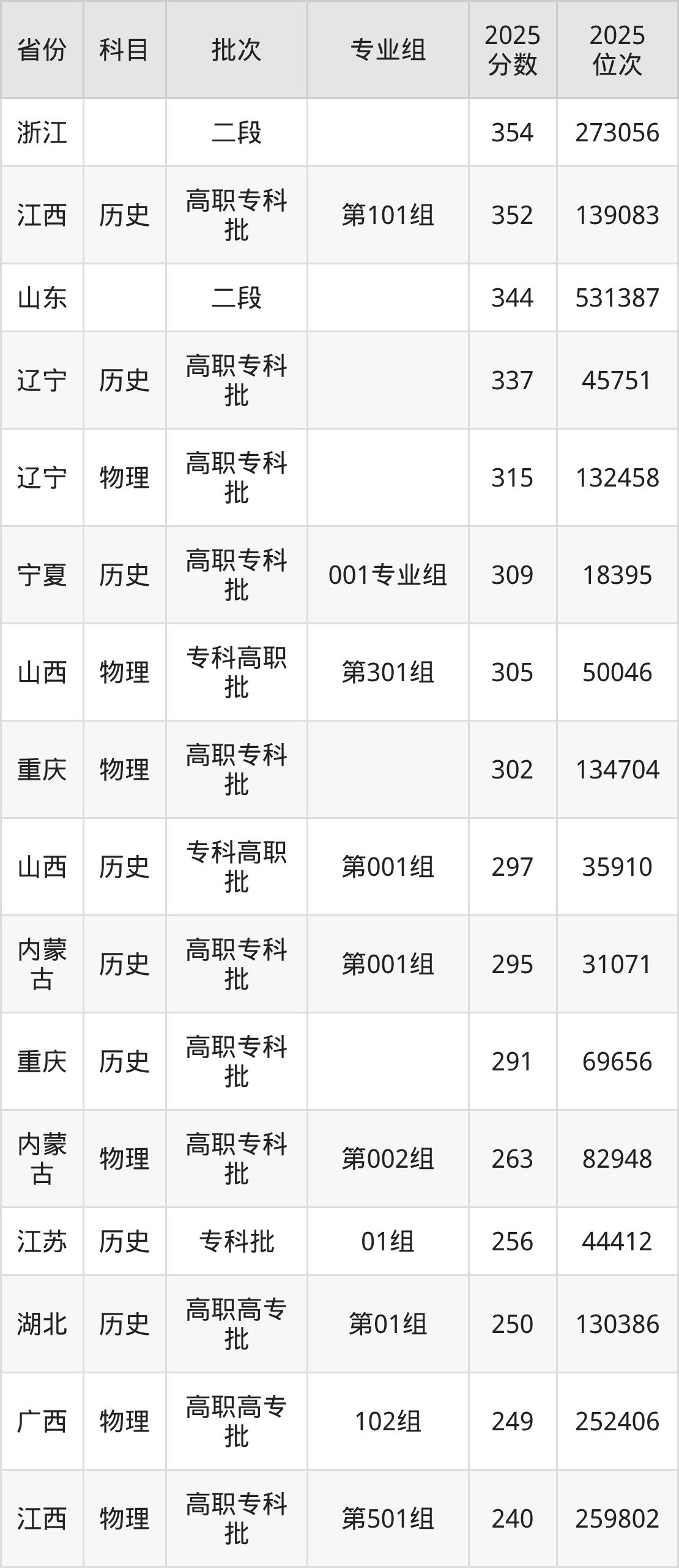 2025年苏州高博职业学院全国录取分数线202分到354分,录取最高在浙江、录取最低在安徽(001组)。