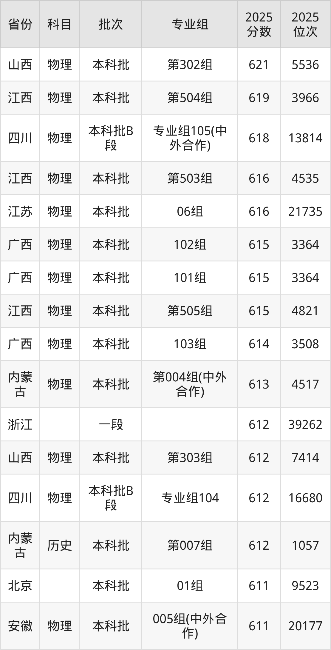 10、电子信息类(含交叉力学)(包含专业:工程力学、电子信息科学与技术、光电信息科学与工程):618分、位次14093名;