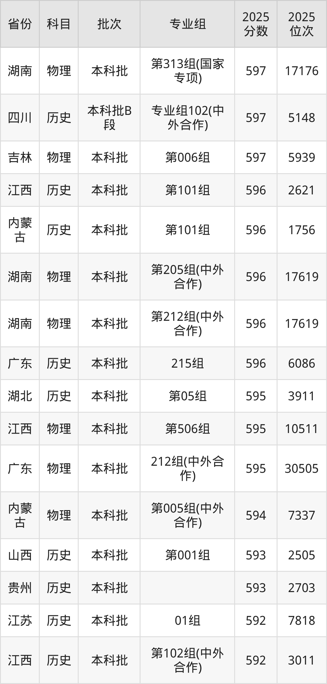 下面是2025年武汉理工大学在全国各省录取最低分数据及位次,各位考生也可作为一个参考。