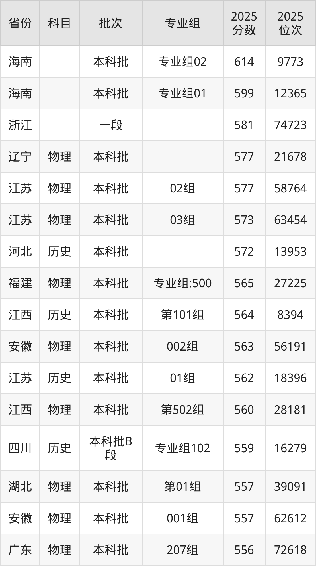 2025年上海第二工业大学全国录取分数线418分到614分,录取最高在海南(专业组02)、录取最低在新疆(理科)。