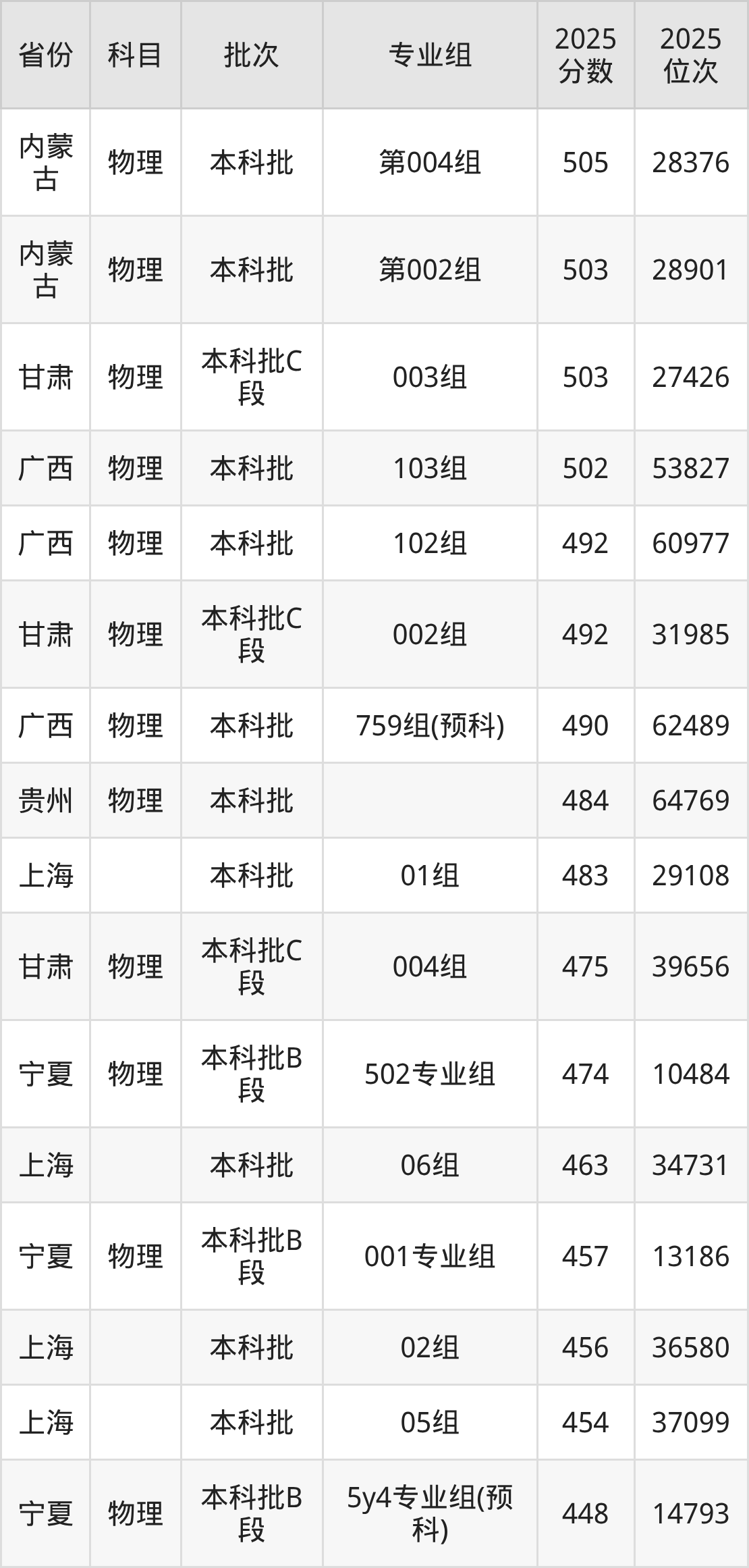 参考2025年山东省高考招录数据,按照分数线从高到低依次为大家展示上海第二工业大学各个专业录取分数线。