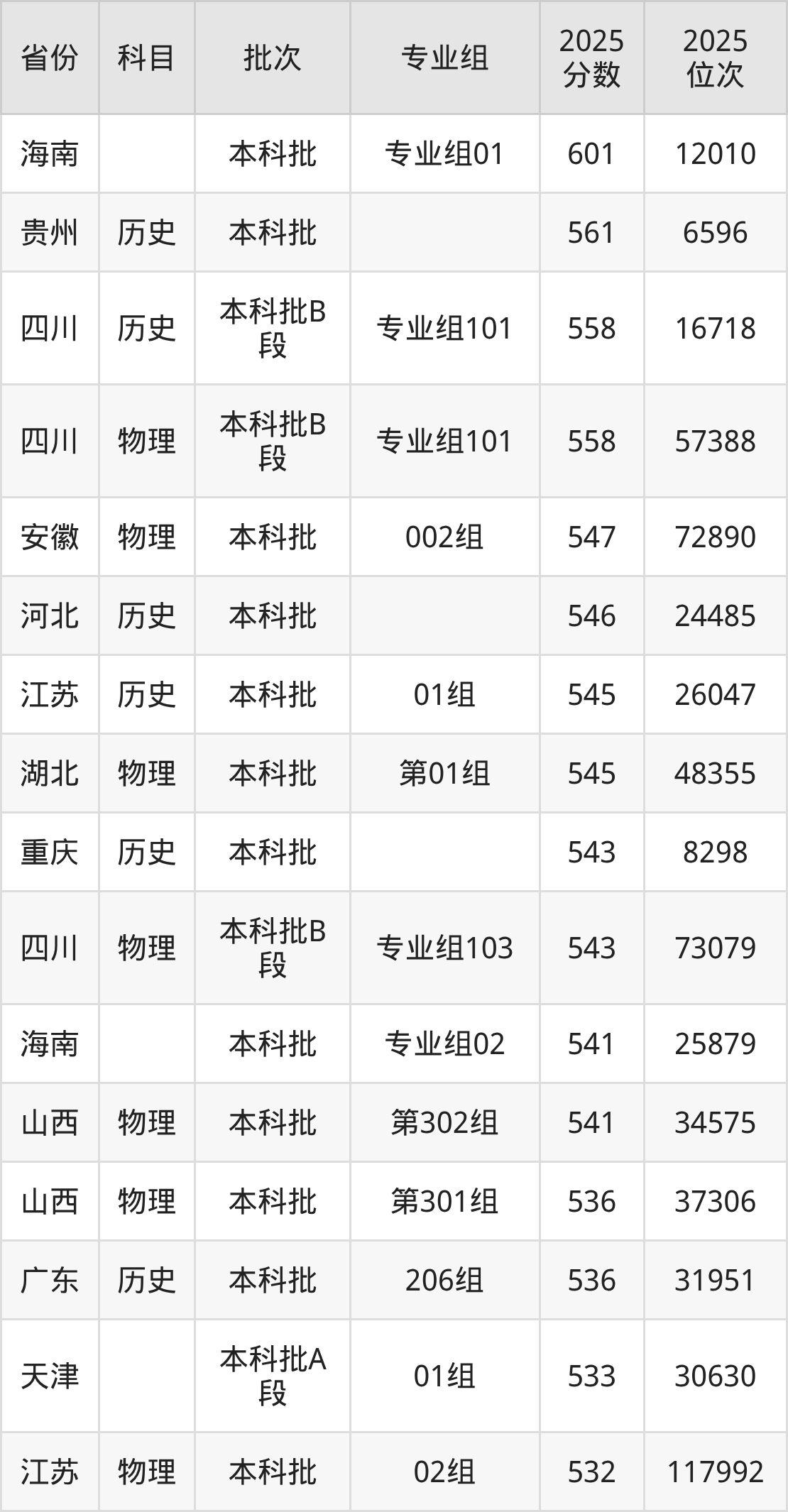 2025年兰州理工大学各专业录取分数线从497分到569分不等,录取分数线最低的专业是土木工程;录取分数线最高的专业是电气工程及其自动化。本文将展示兰州理工大学所有专业最低分数线及位次,供2026届高考生参考。