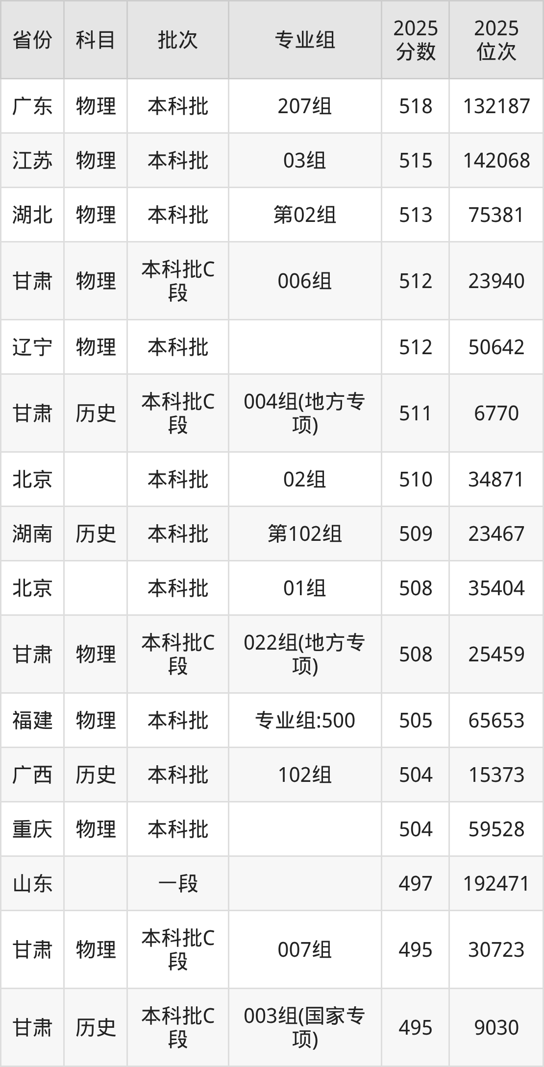 参考2025年山东省高考招录数据,按照分数线从高到低依次为大家展示兰州理工大学各个专业录取分数线。