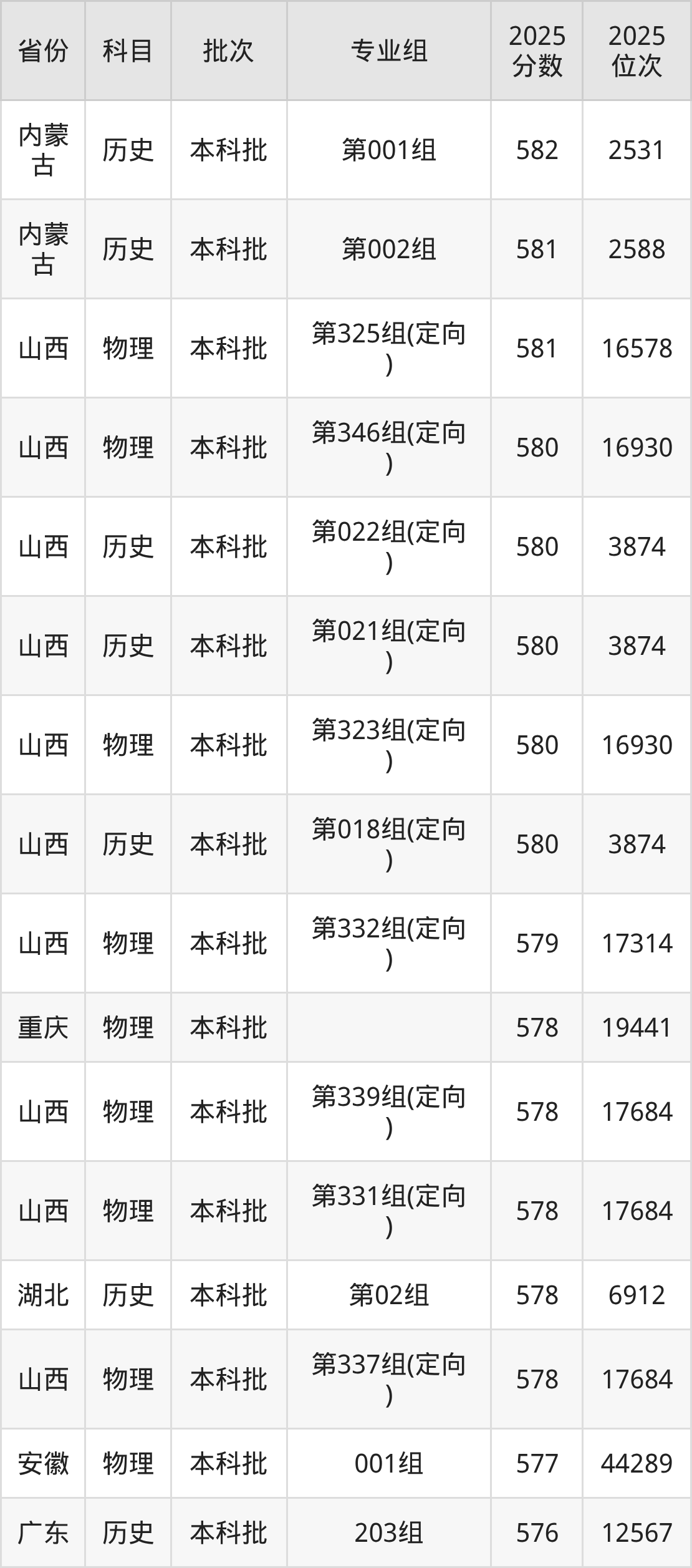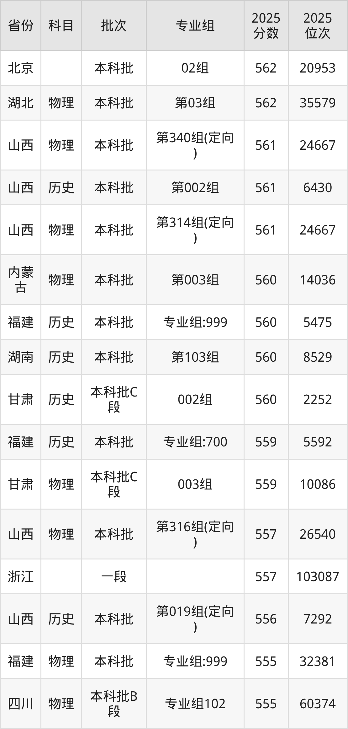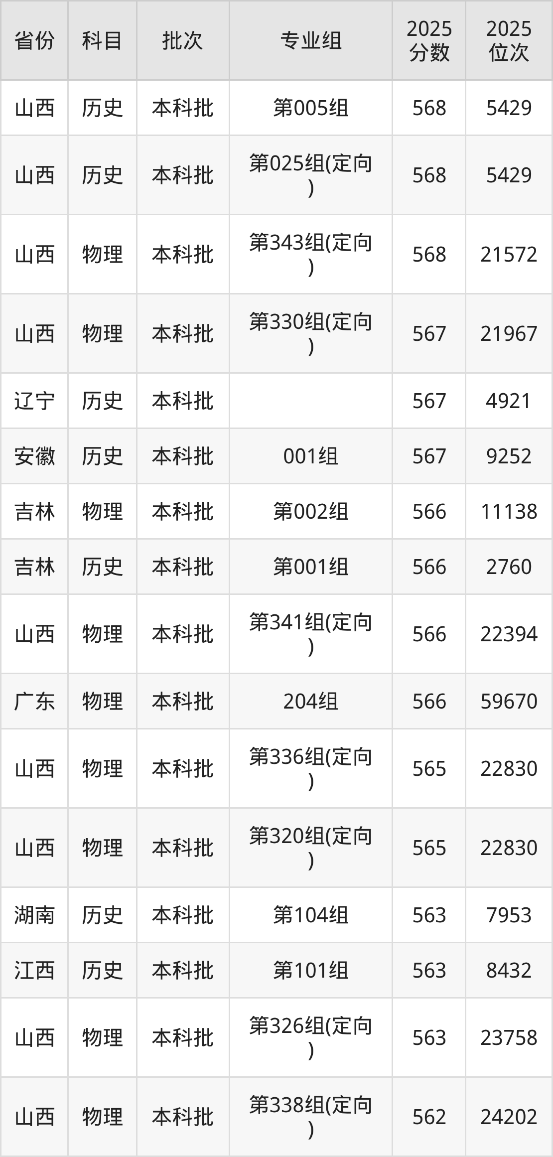 下面是2025年山西大学在全国各省录取最低分数据及位次,各位考生也可作为一个参考。