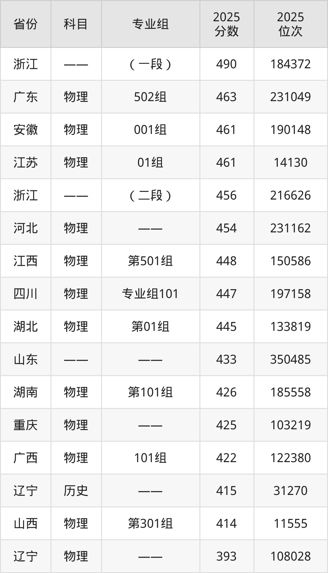 2025年上海电子信息职业技术学院全国录取分数线268分到490分,录取最高在浙江、录取最低在新疆(理科)。