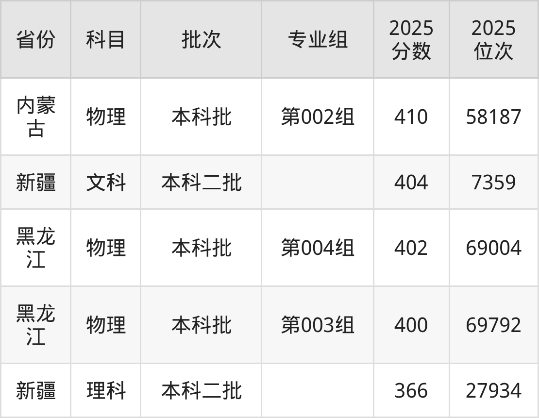 一、塔里木大学2025年专业录取分数线