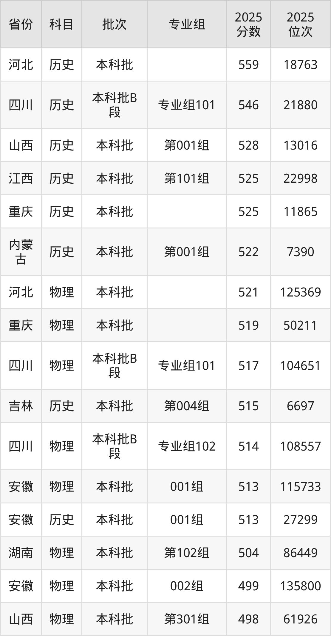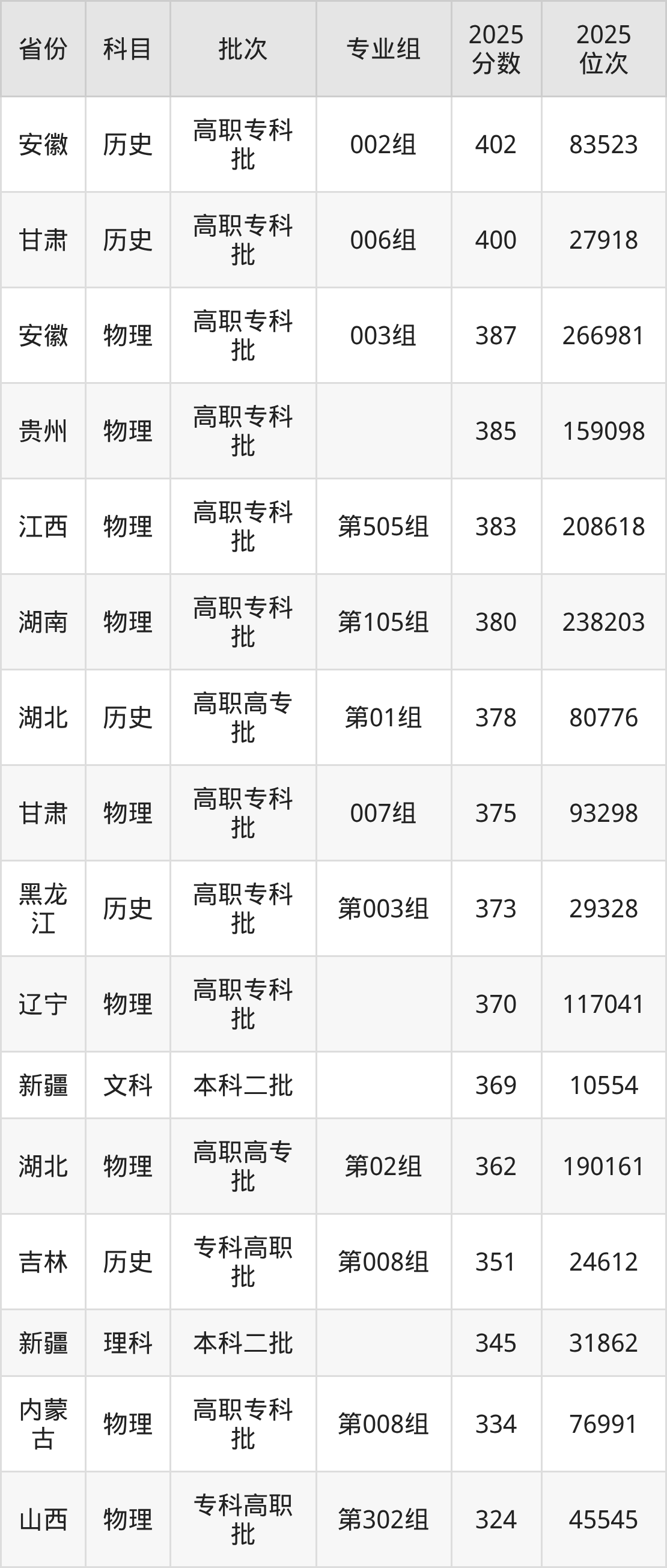 下面是2025年新疆警察学院在全国各省录取最低分数据及位次,各位考生也可作为一个参考。