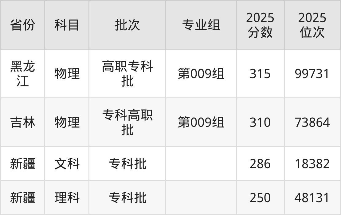 一、新疆警察学院2025年专业录取分数线