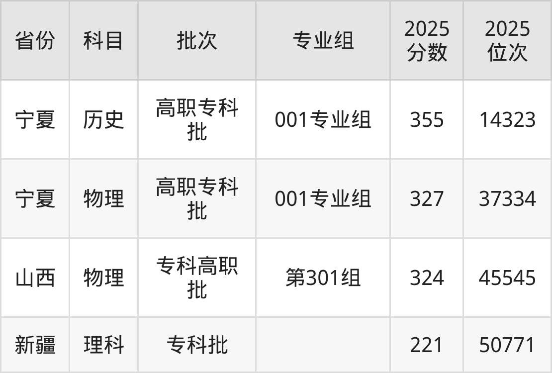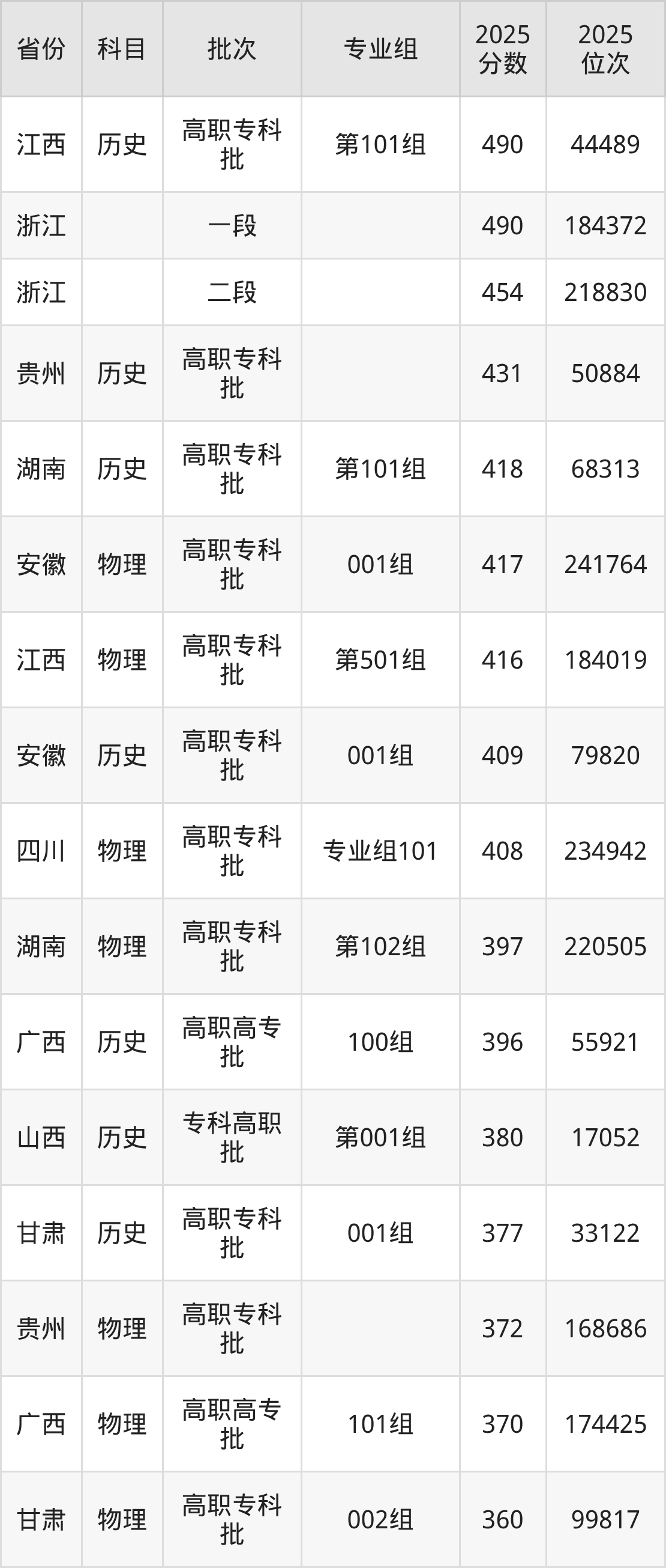 下面是2025年福州职业技术学院在全国各省录取最低分数据及位次,各位考生也可作为一个参考。