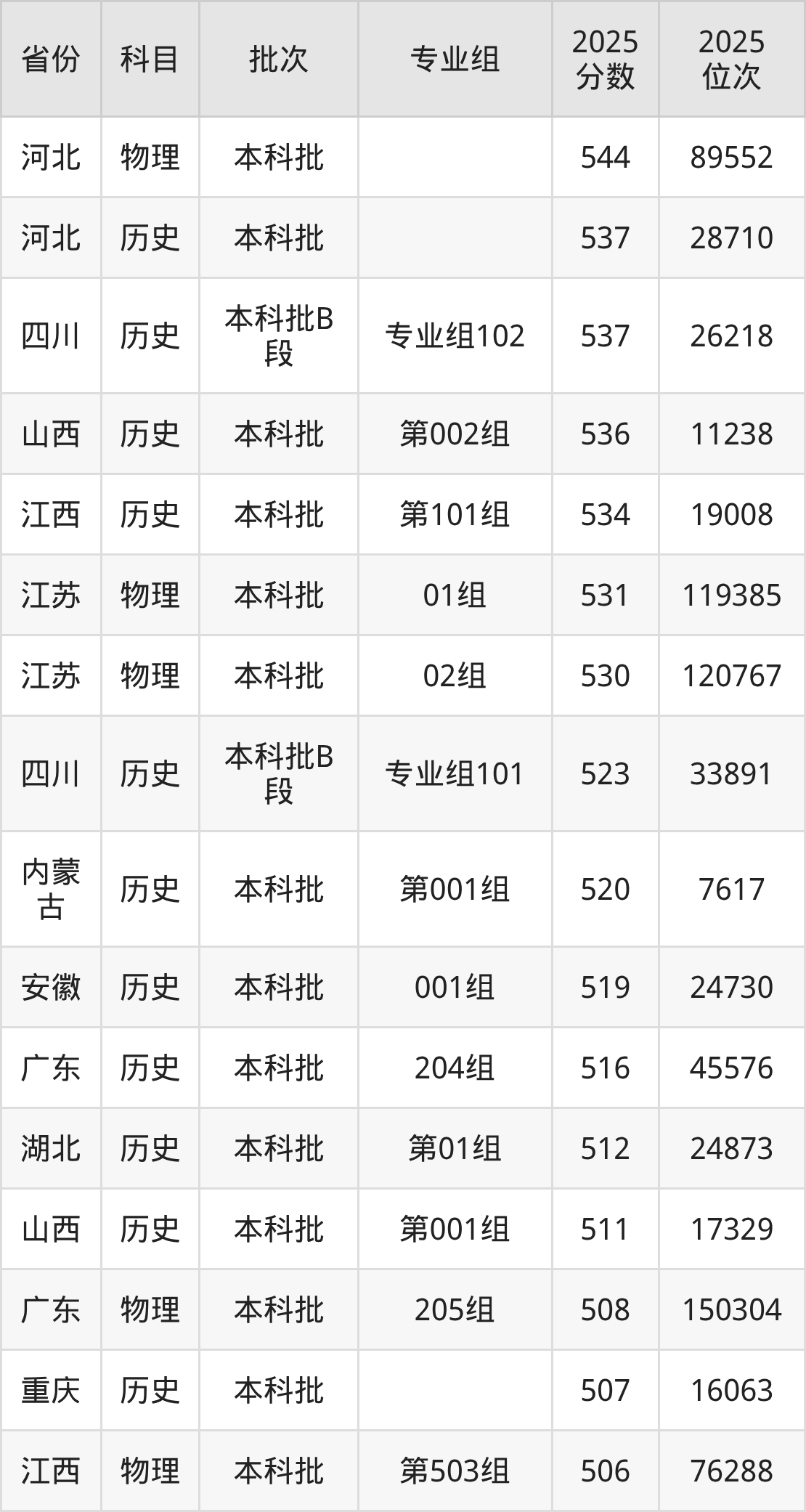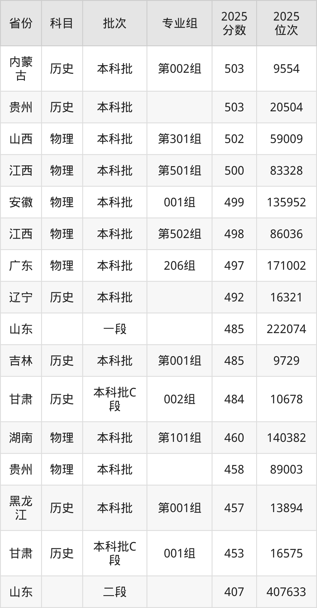下面是2025年山东青年政治学院在全国各省录取最低分数据及位次,各位考生也可作为一个参考。