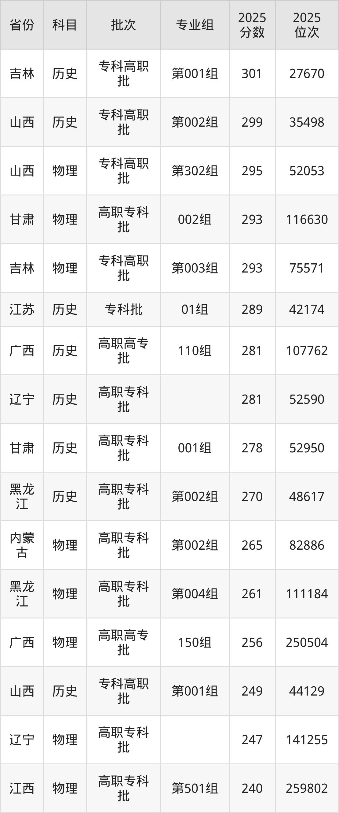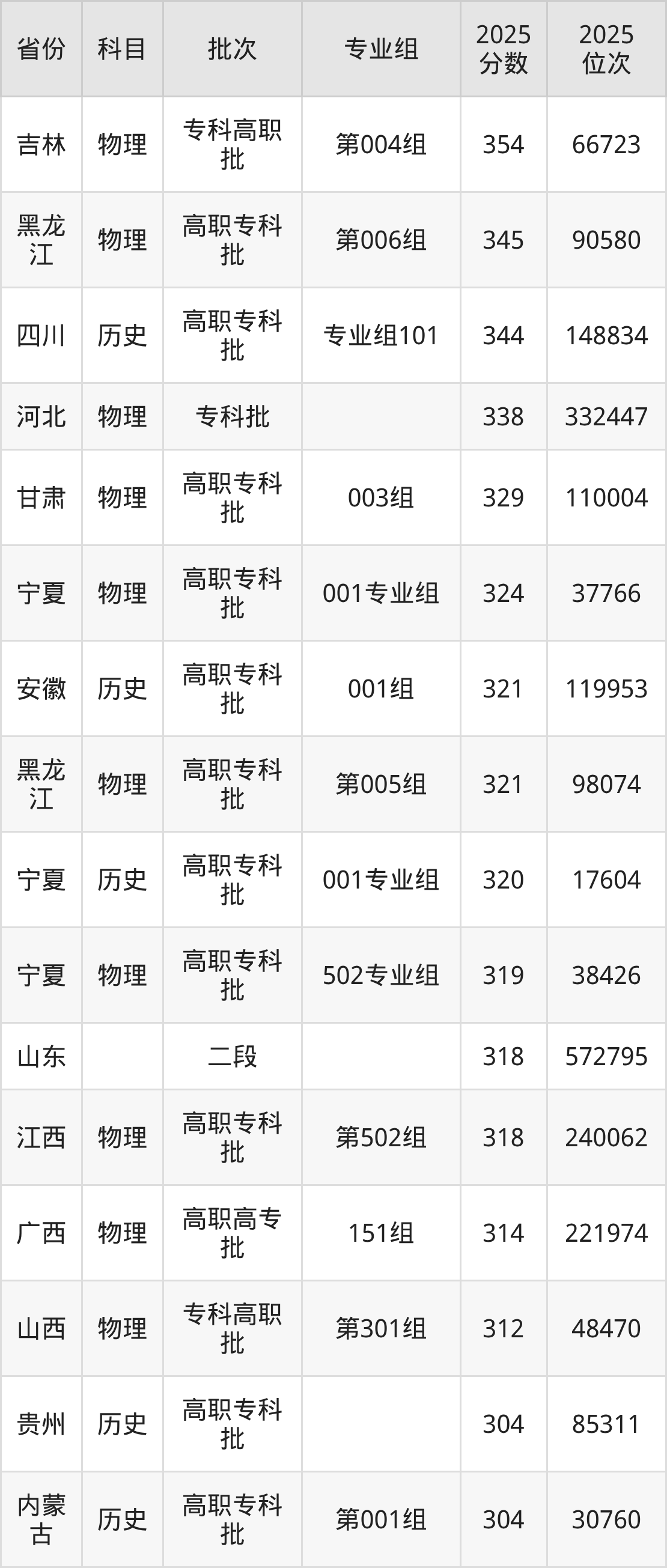 下面是2025年大兴安岭职业学院在全国各省录取最低分数据及位次,各位考生也可作为一个参考。