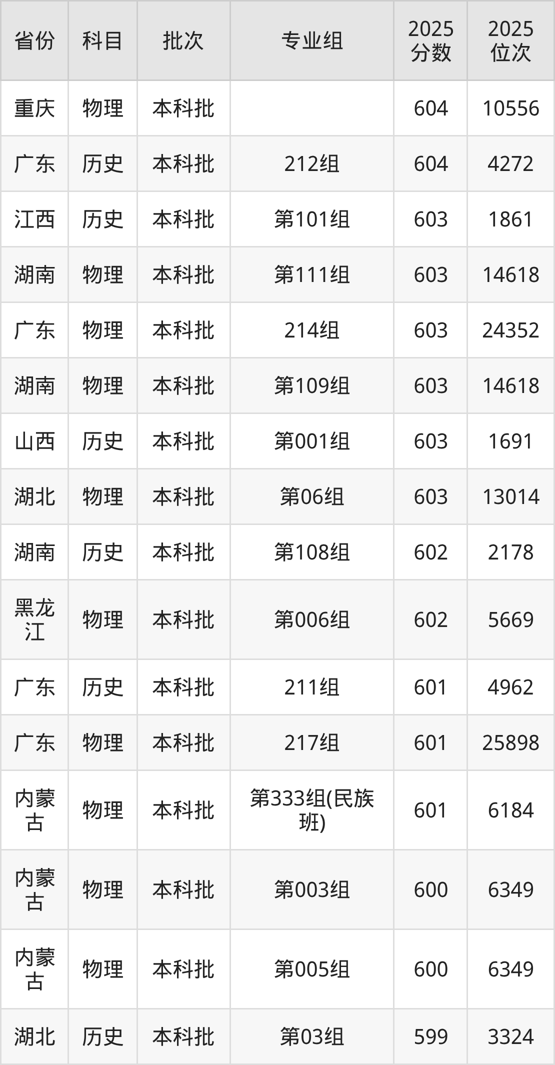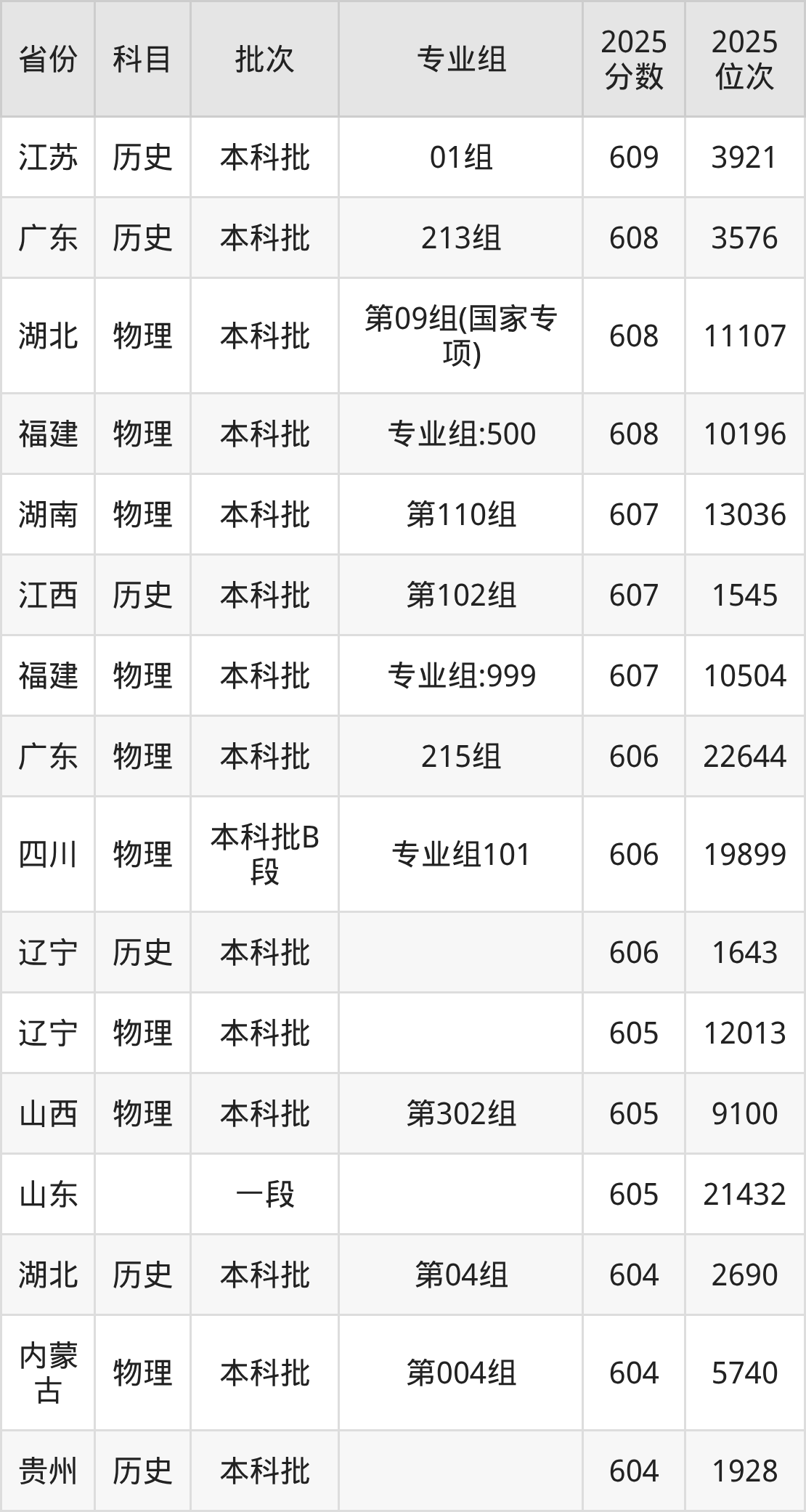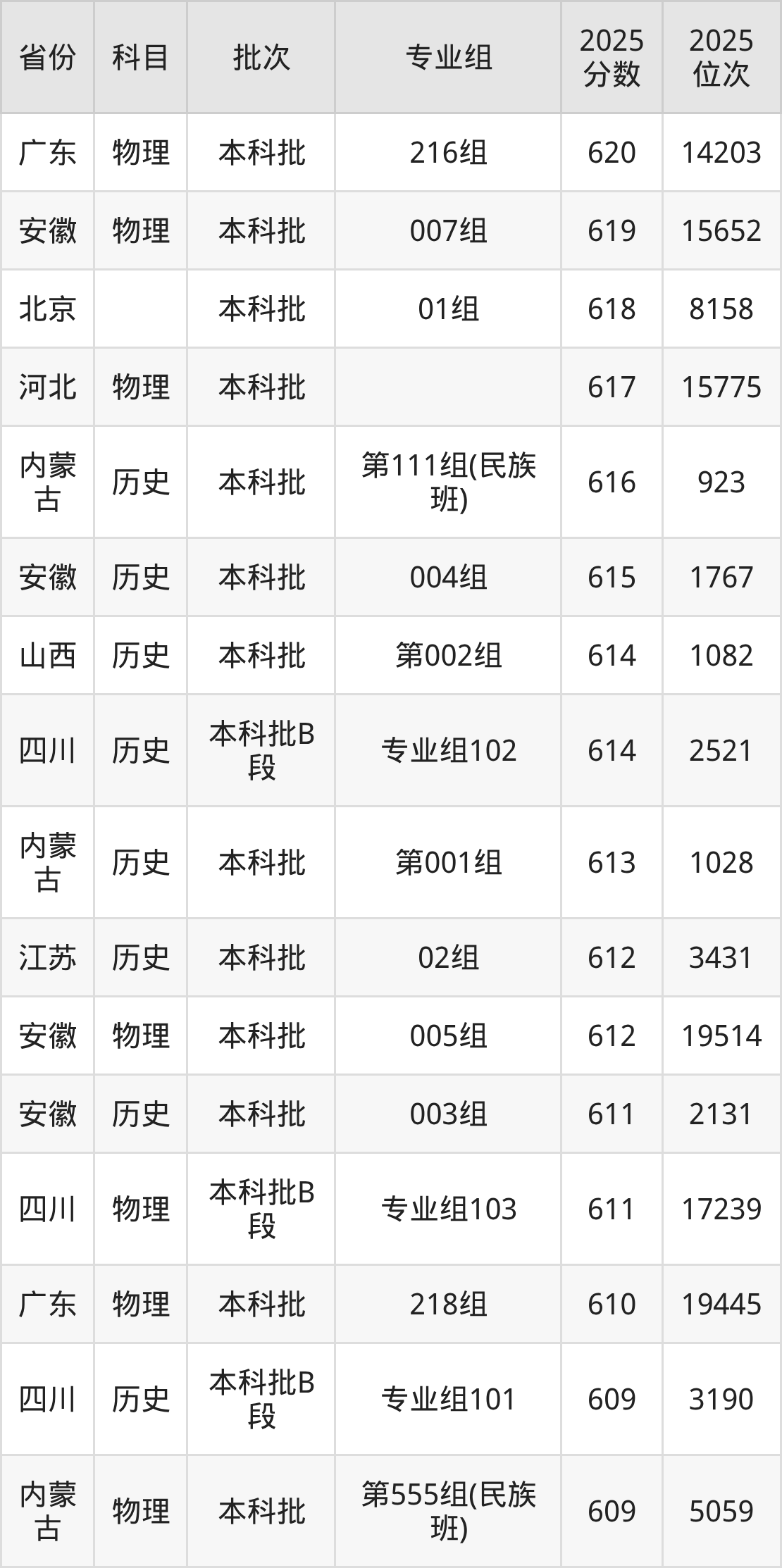 14、物理学类:615分、位次15568名;