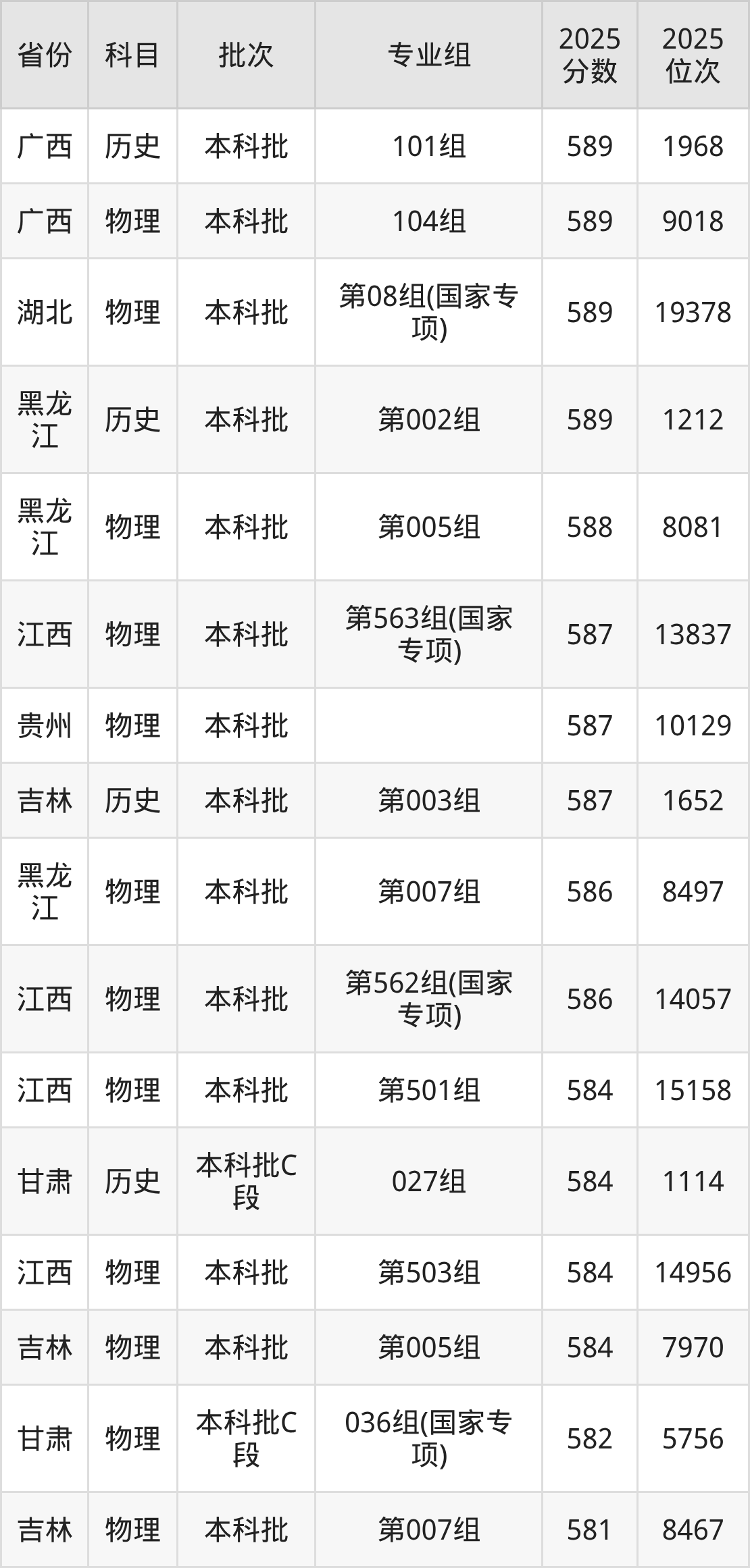 一、兰州大学2025年专业录取分数线