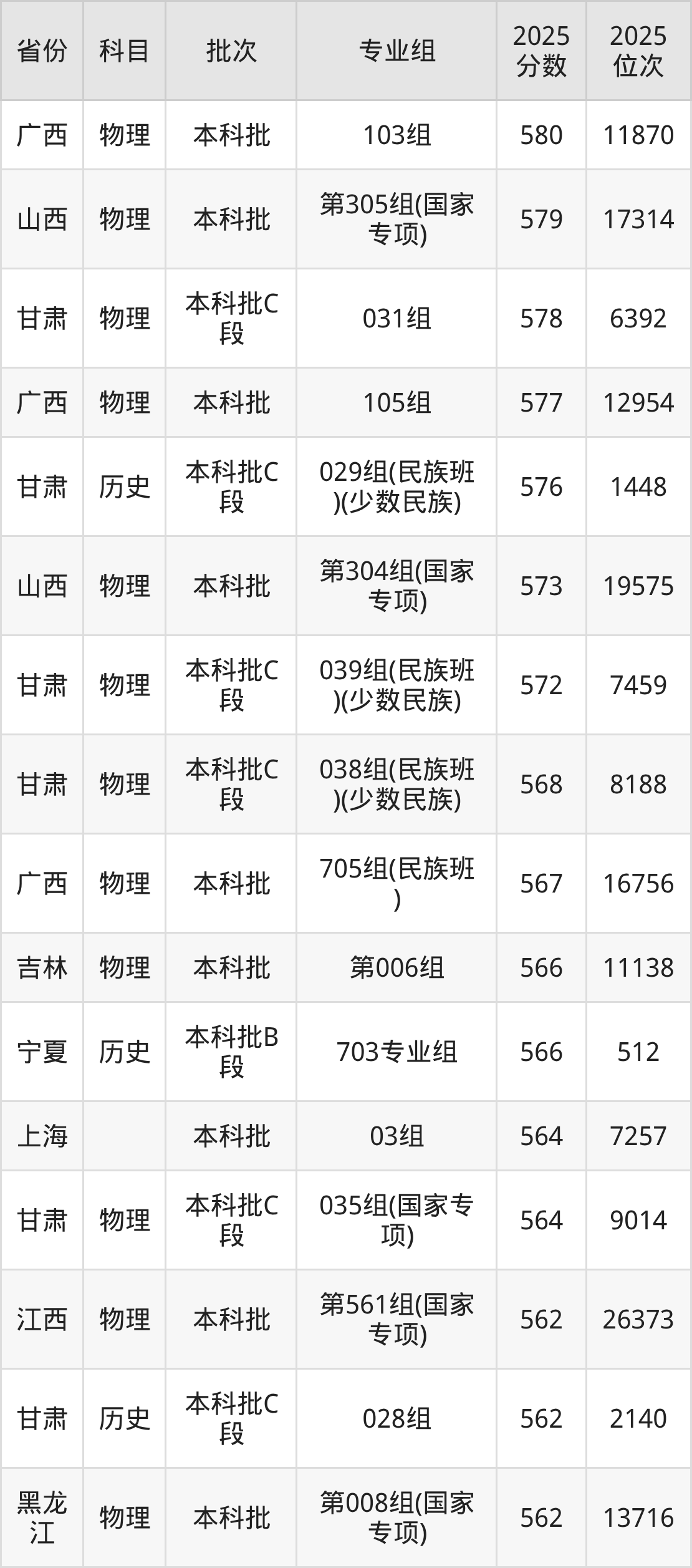三、兰州大学2025年录取分数线