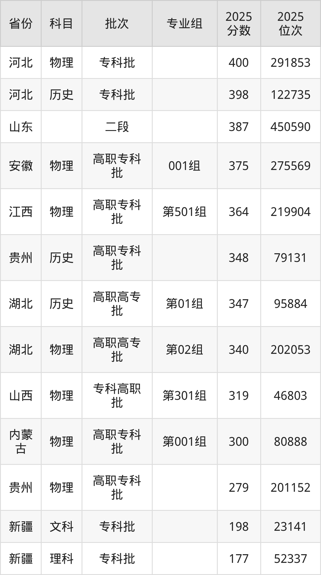 参考2025年山东省高考招录数据,按照分数线从高到低依次为大家展示湖北黄冈应急管理职业技术学院各个专业录取分数线。
