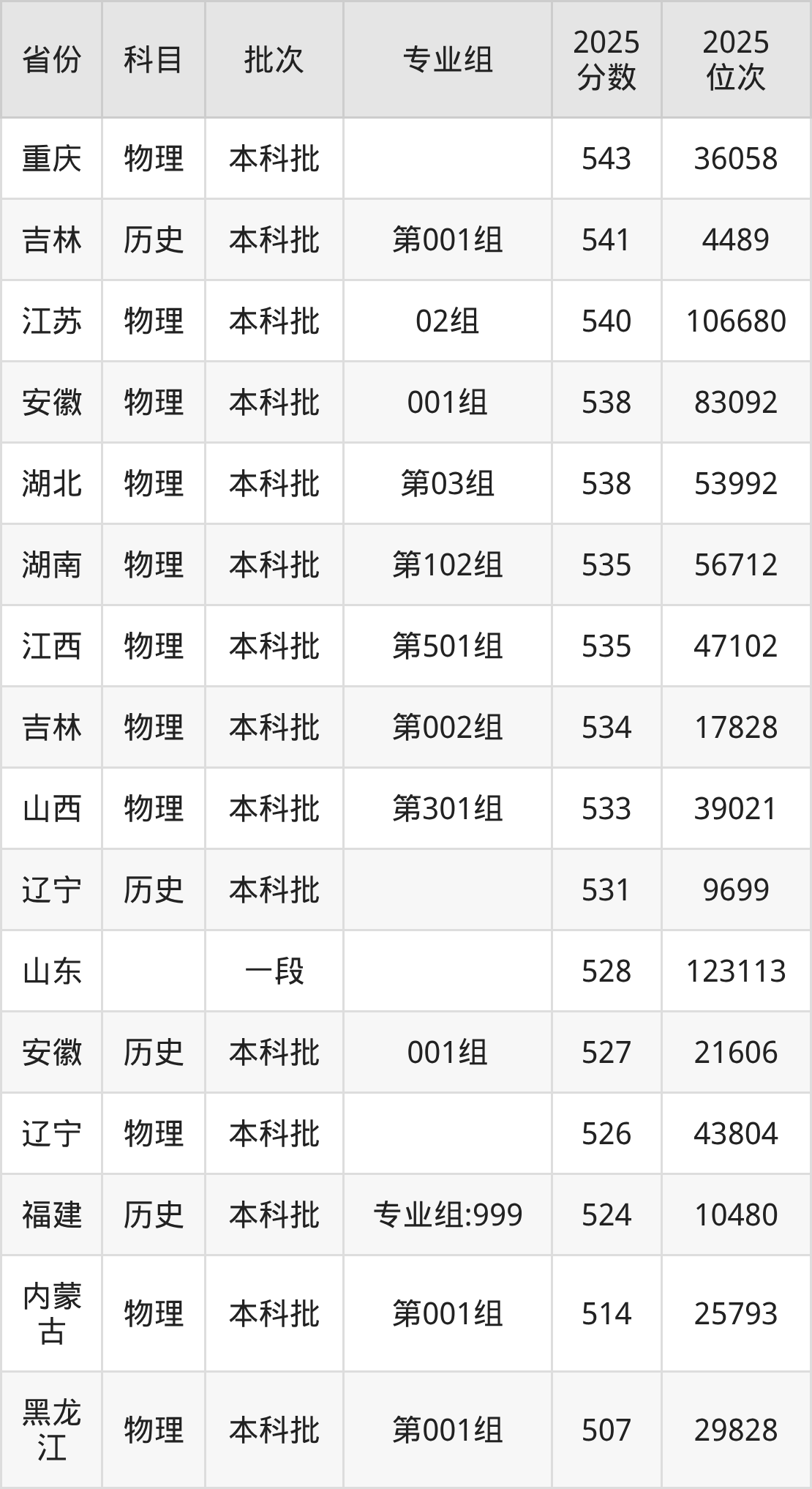 参考2025年山东省高考招录数据,按照分数线从高到低依次为大家展示北京石油化工学院各个专业录取分数线。