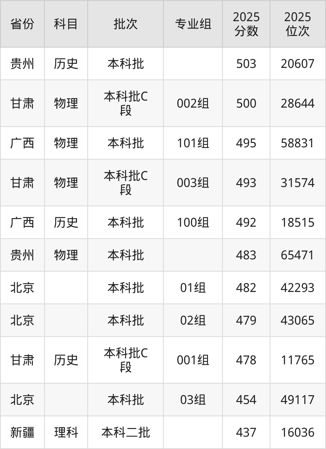 2025年北京石油化工学院全国录取分数线437分到576分,录取最高在海南(专业组01)、录取最低在新疆(理科)。
