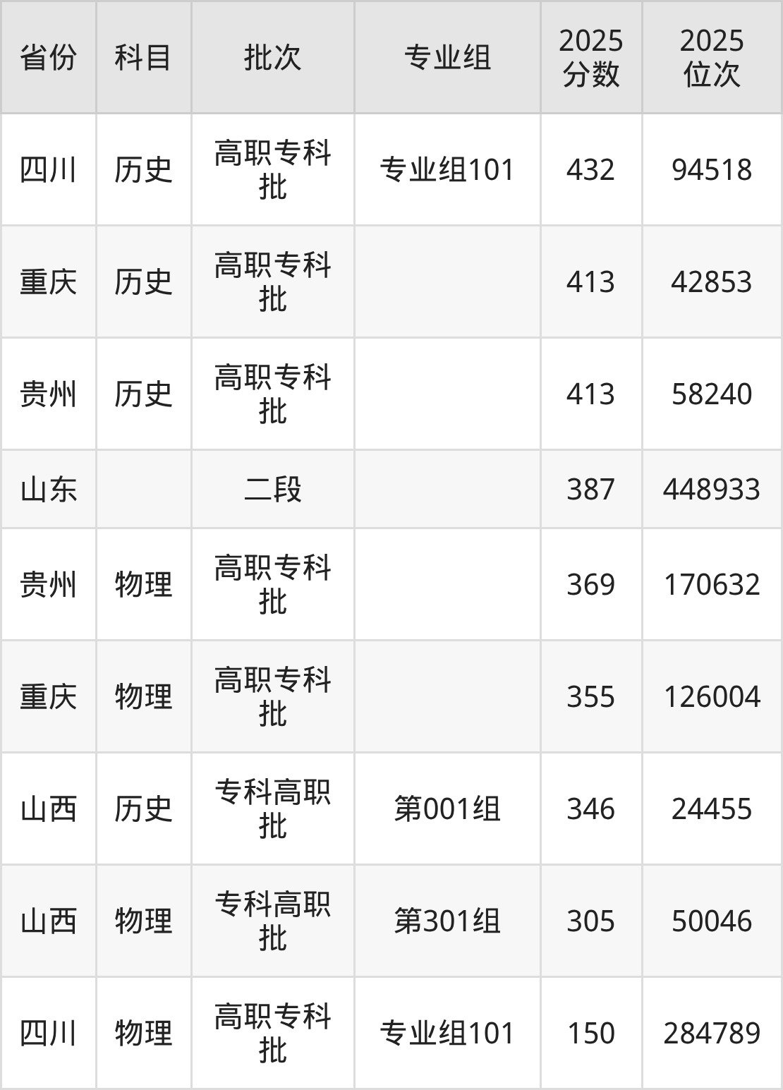 2025年保山中医药高等专科学校全国录取分数线150分到432分,录取最高在四川(专业组101)、录取最低在四川(专业组101)。