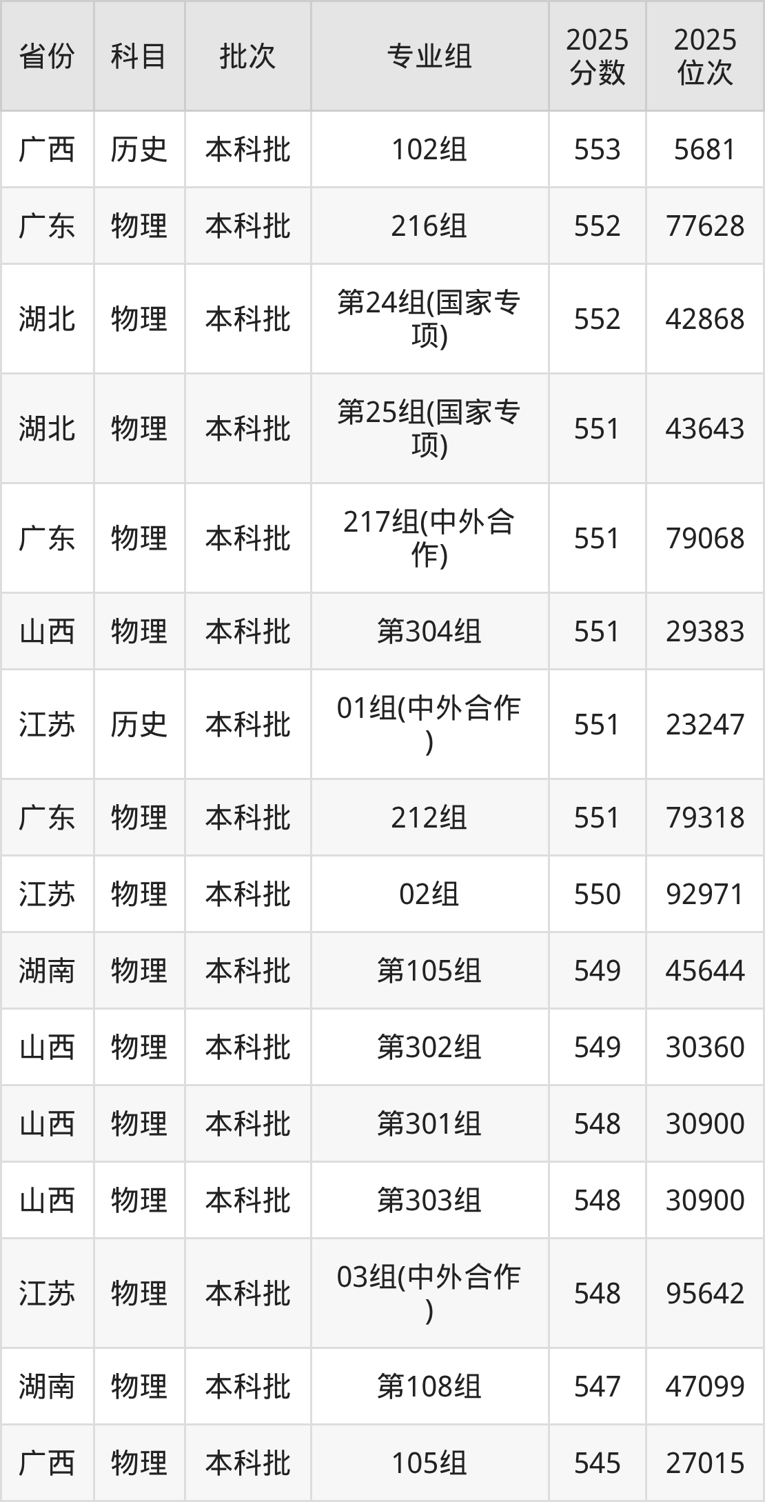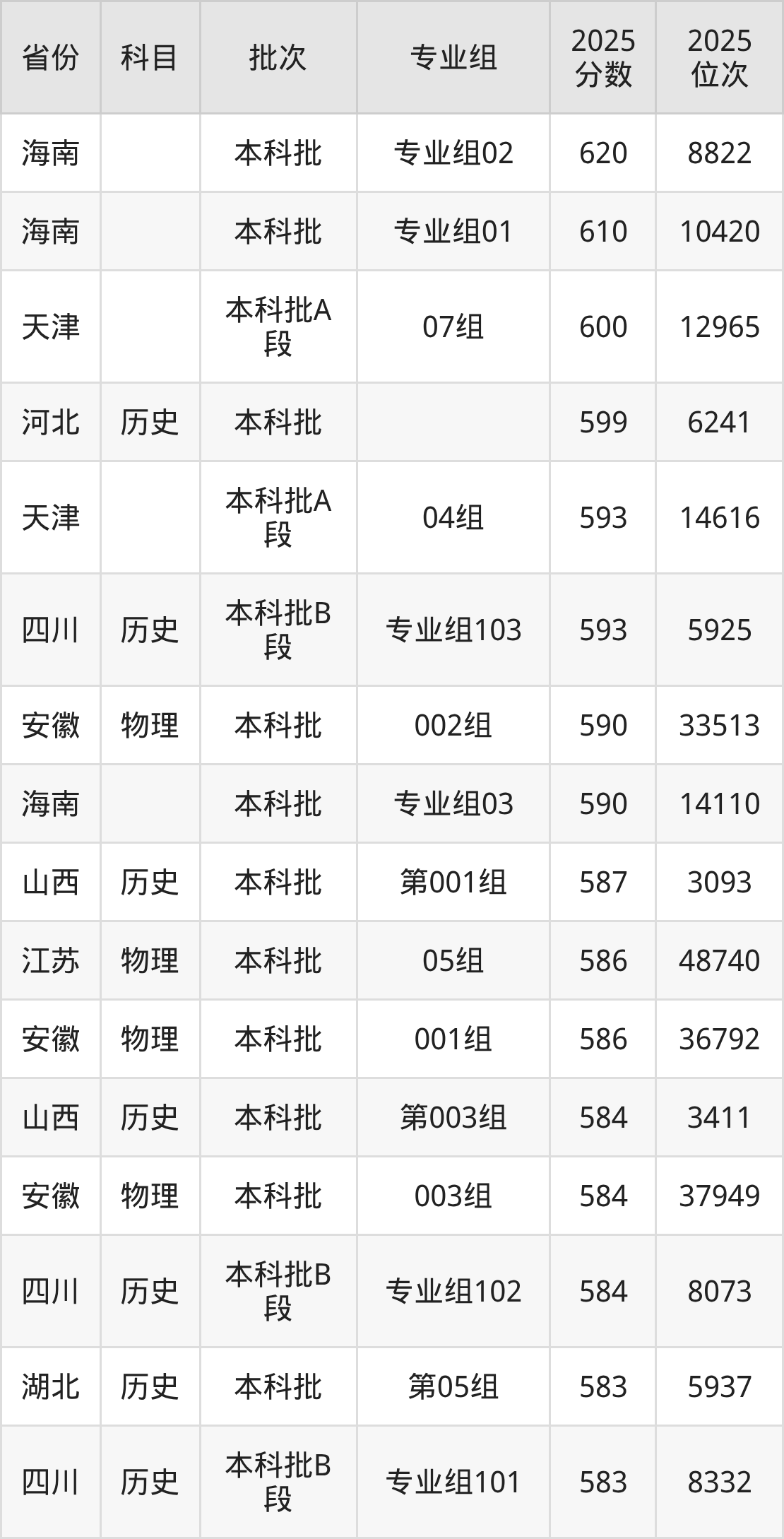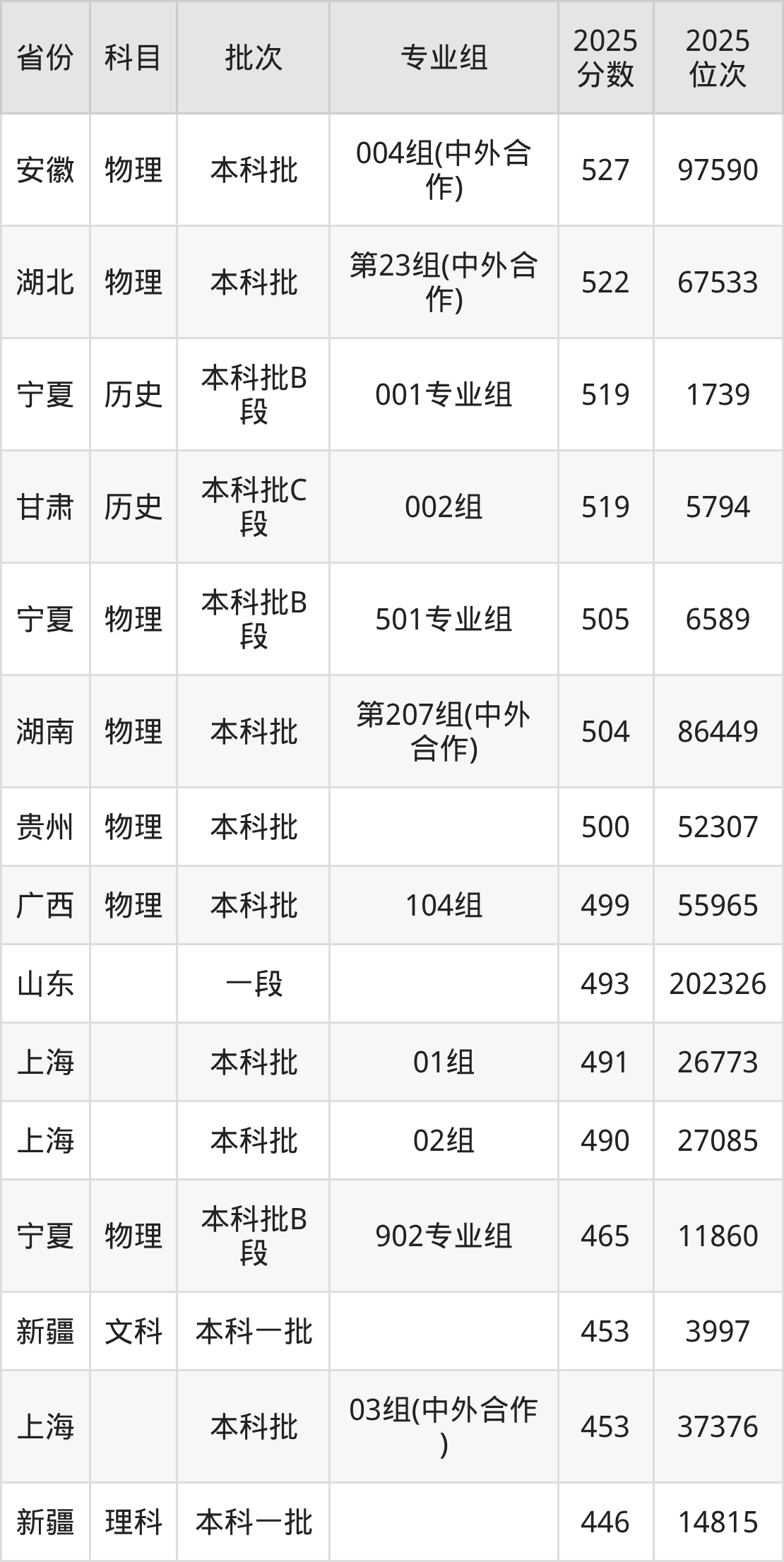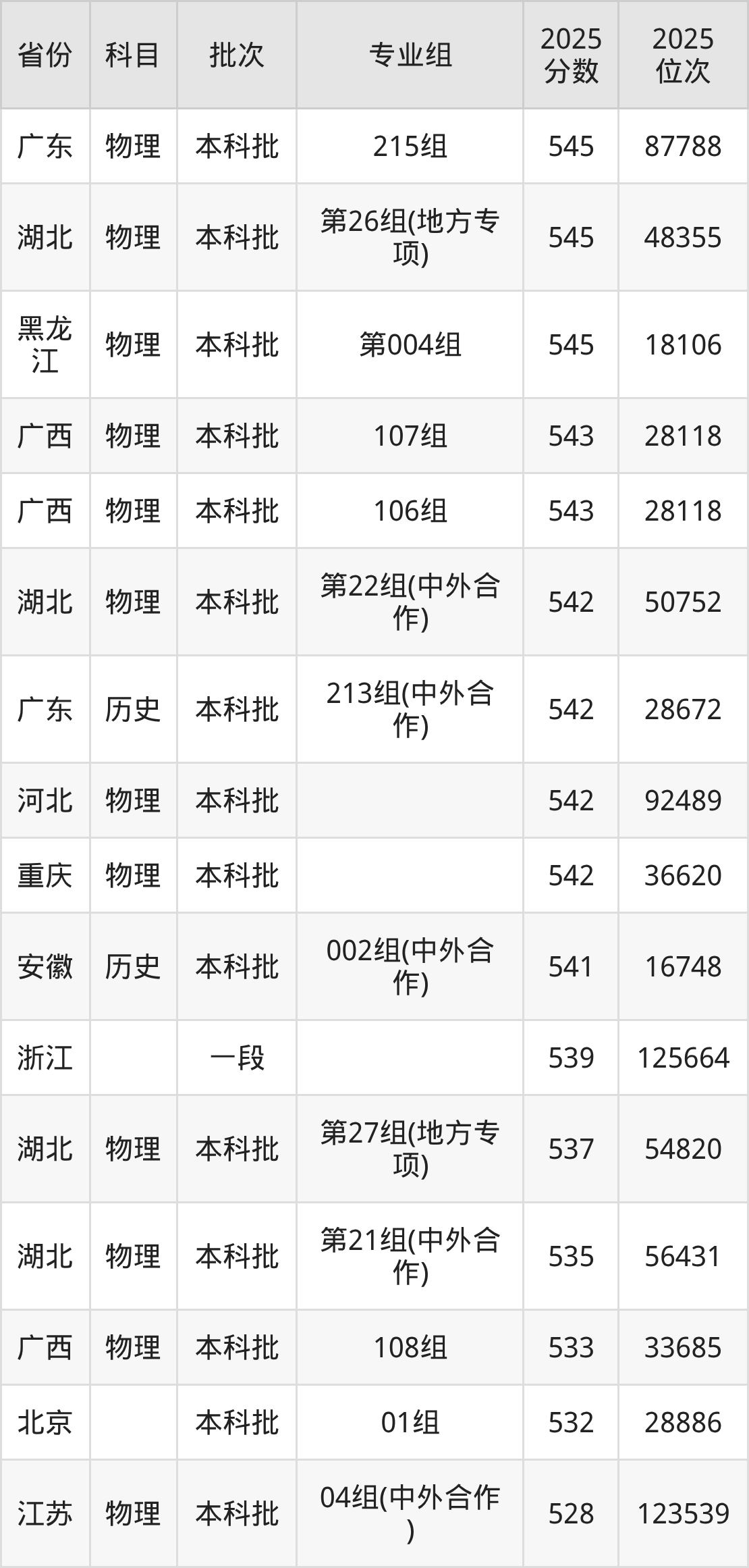 参考2025年山东省高考招录数据,按照分数线从高到低依次为大家展示湖北大学各个专业录取分数线。