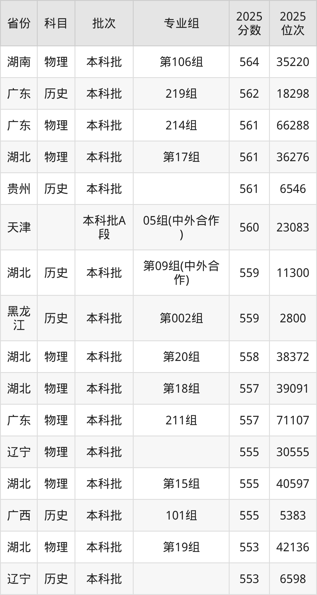下面是2025年湖北大学在全国各省录取最低分数据及位次,各位考生也可作为一个参考。