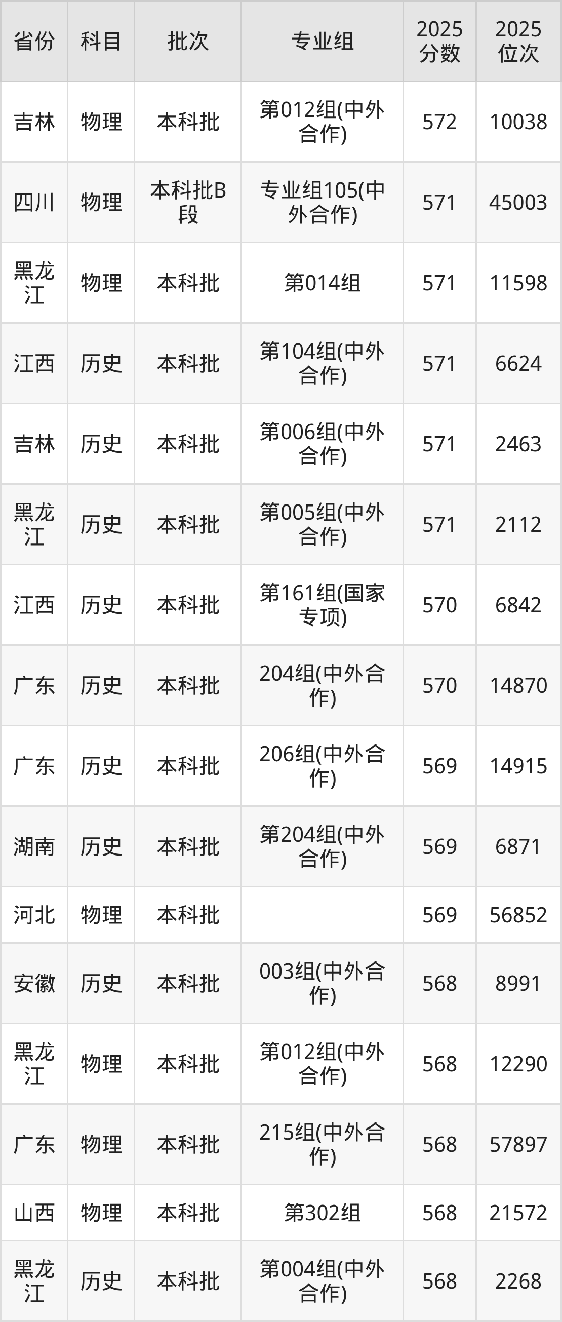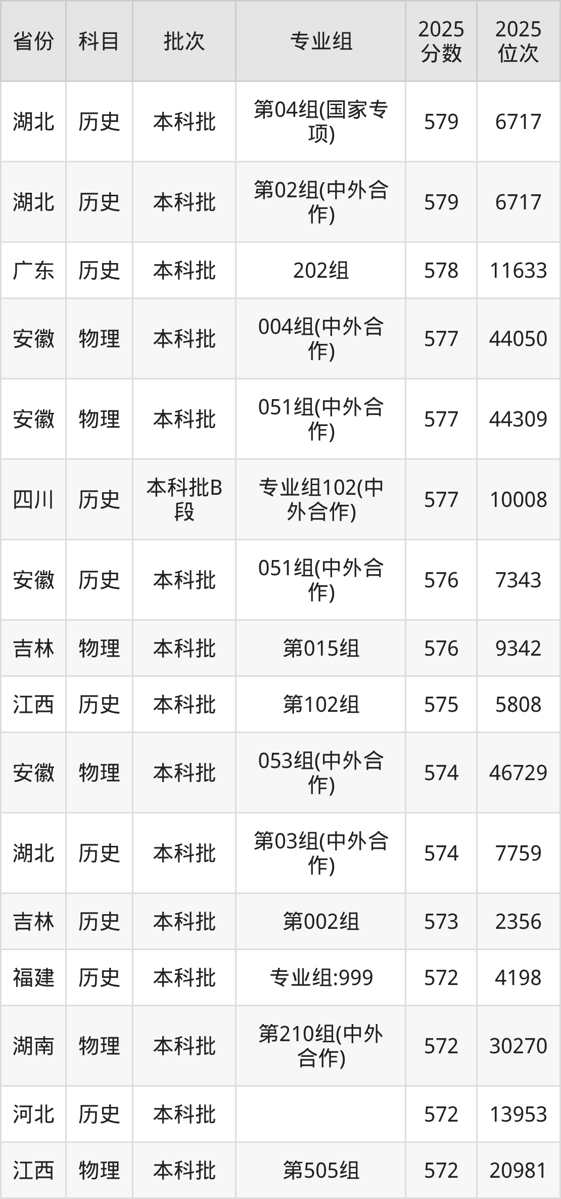 23、财务管理(中外合作办学)(与英国萨里大学合作办学):577分、位次45547名;