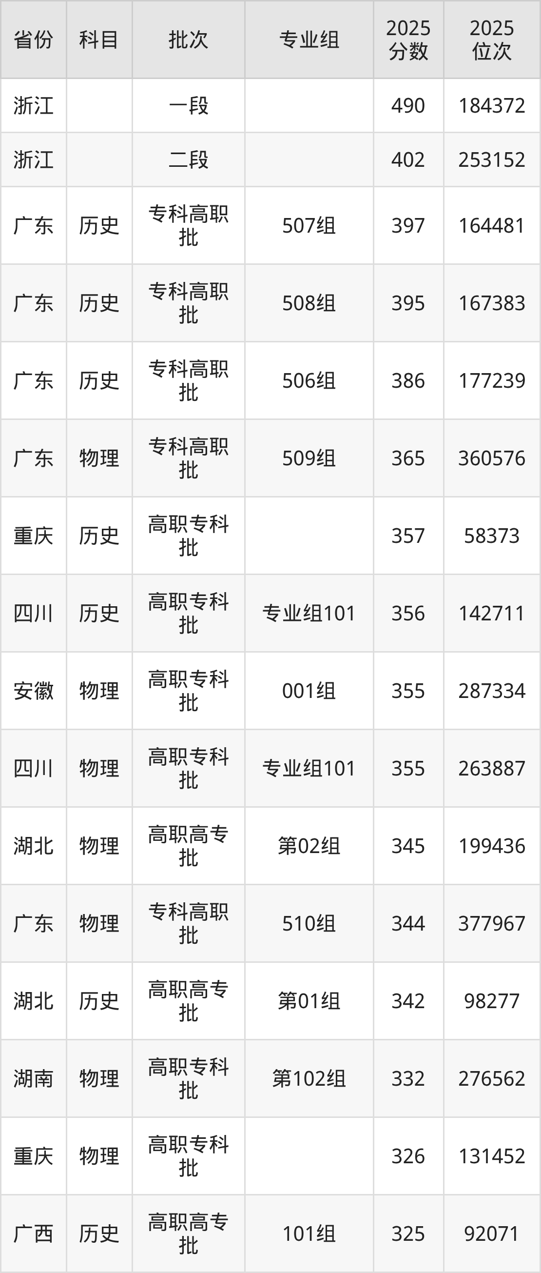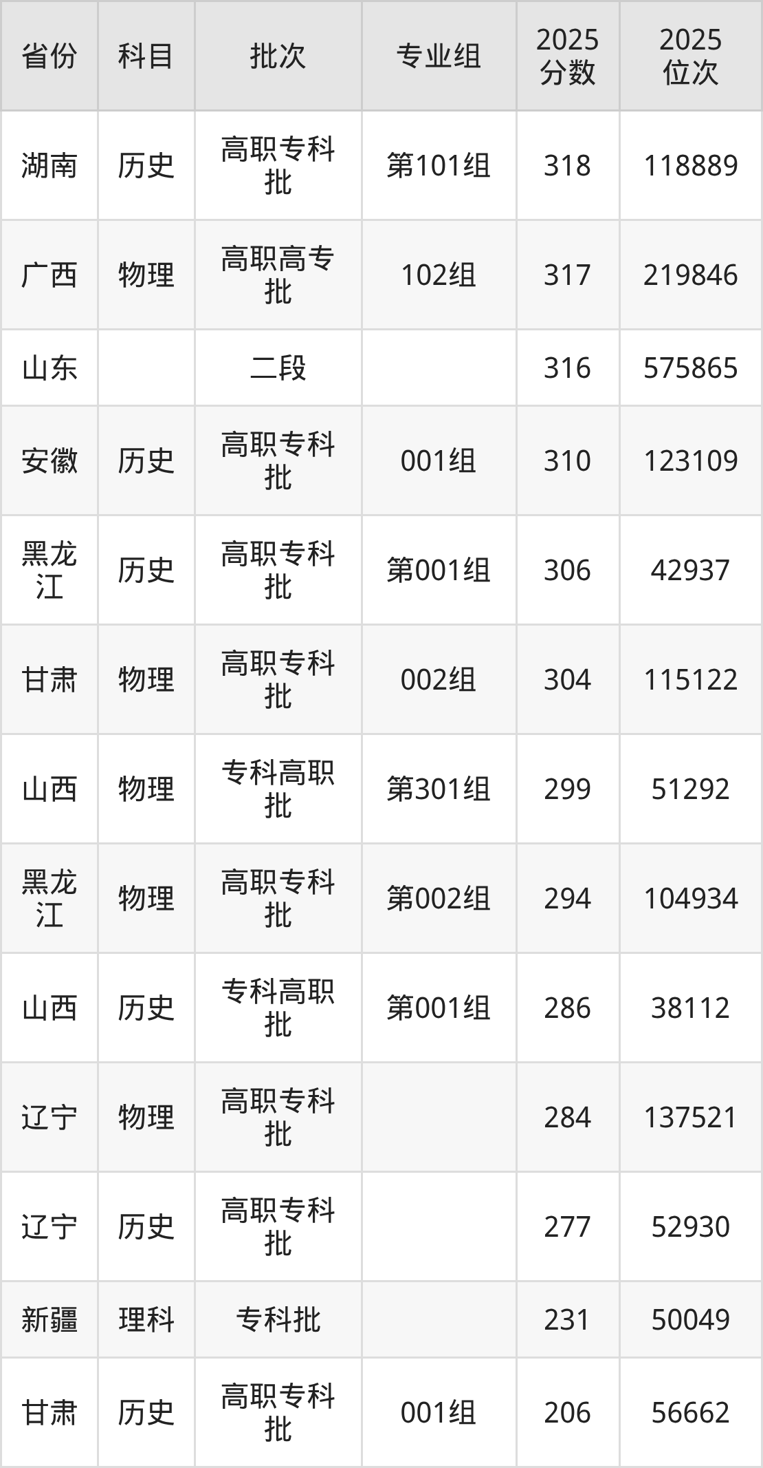 下面是2025年漯河职业技术学院在全国各省录取最低分数据及位次,各位考生也可作为一个参考。
