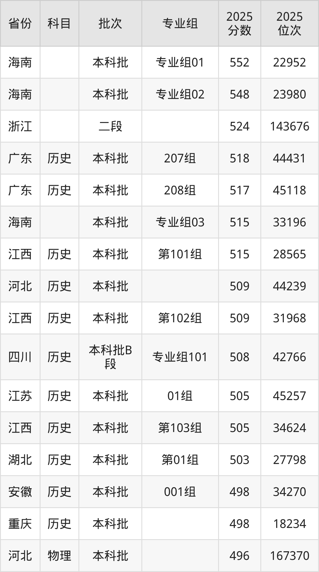 2025年江西财经大学现代经济管理学院全国录取分数线389分到552分,录取最高在海南(专业组01)、录取最低在黑龙江(第005组)。