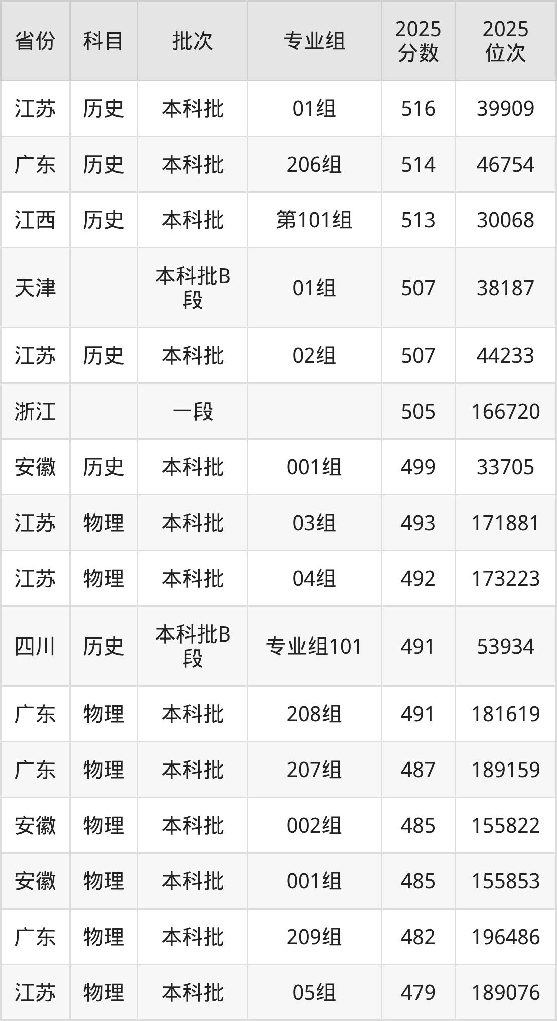 参考2025年山东省高考招录数据,按照分数线从高到低依次为大家展示南京师范大学中北学院各个专业录取分数线。