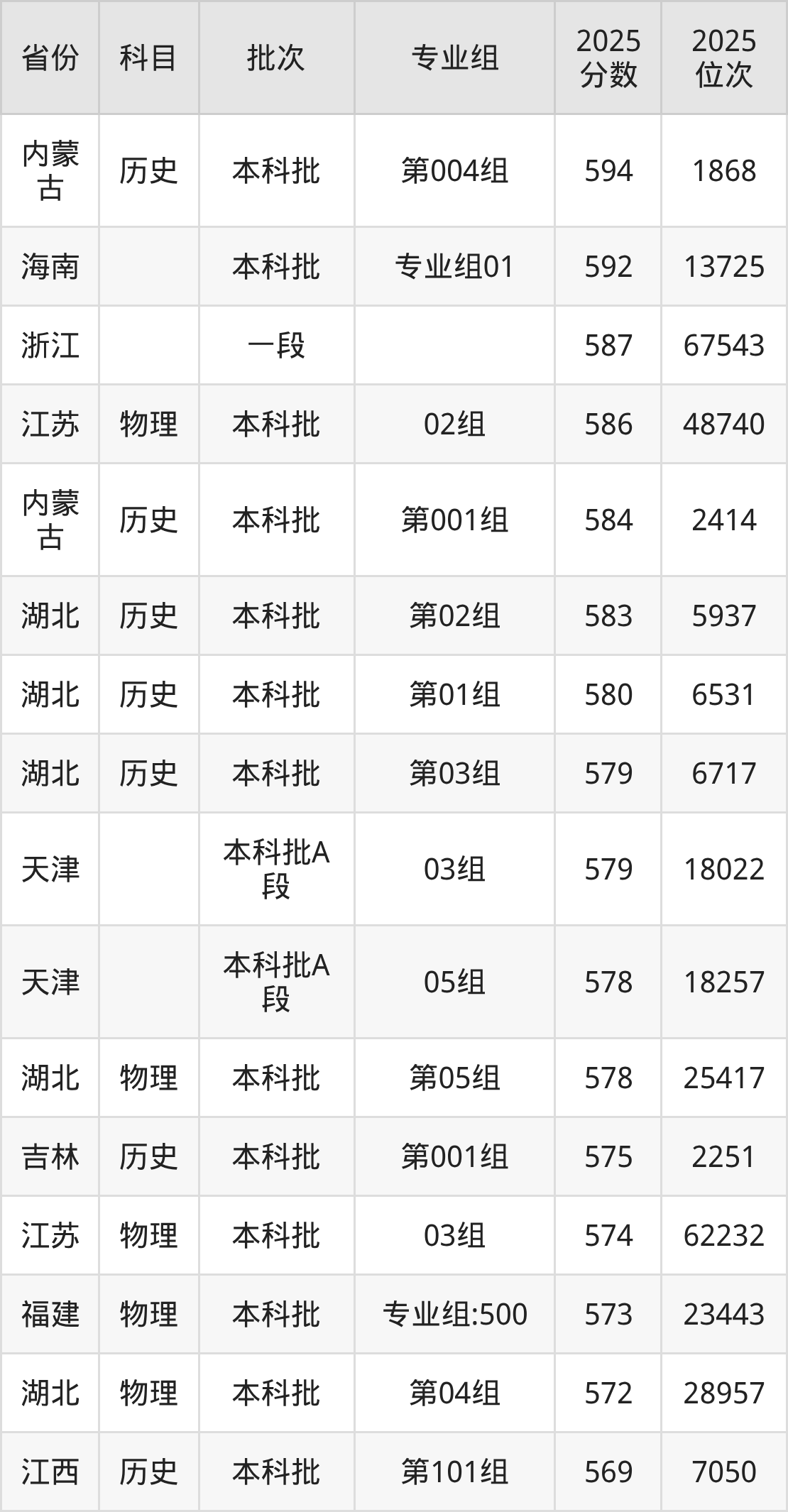 6、软件工程(机器人创新实验班):572分、位次50732名;