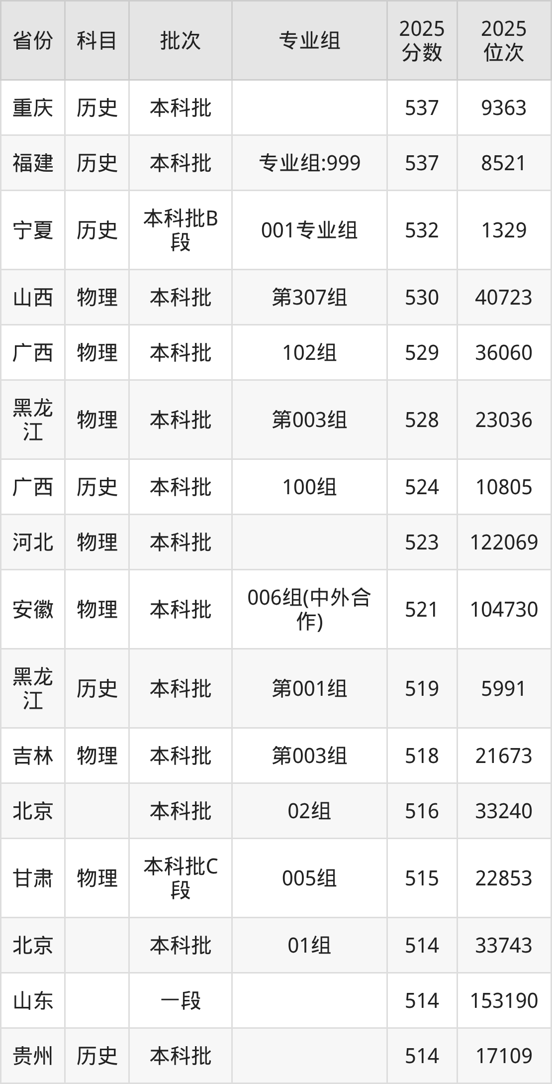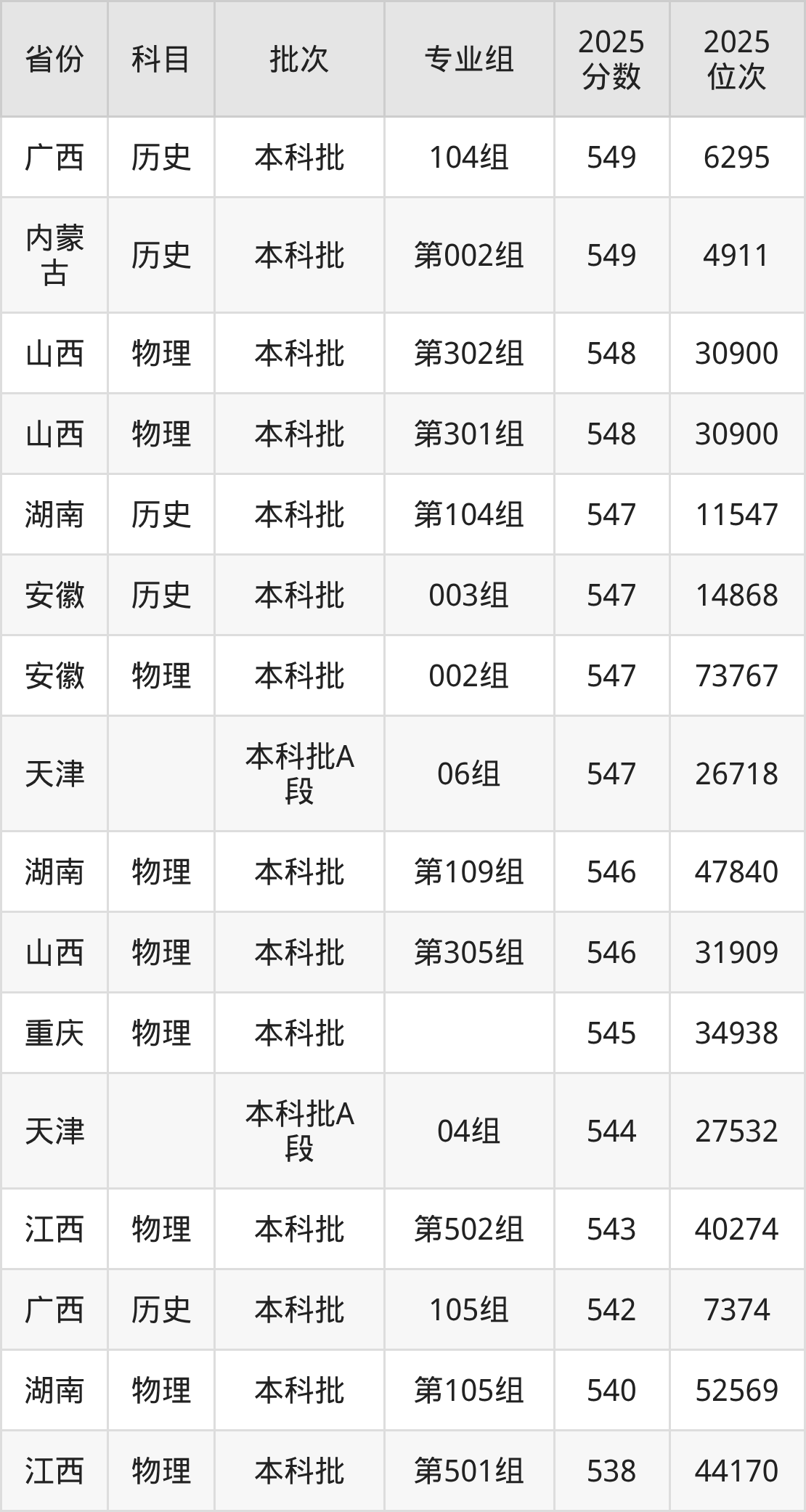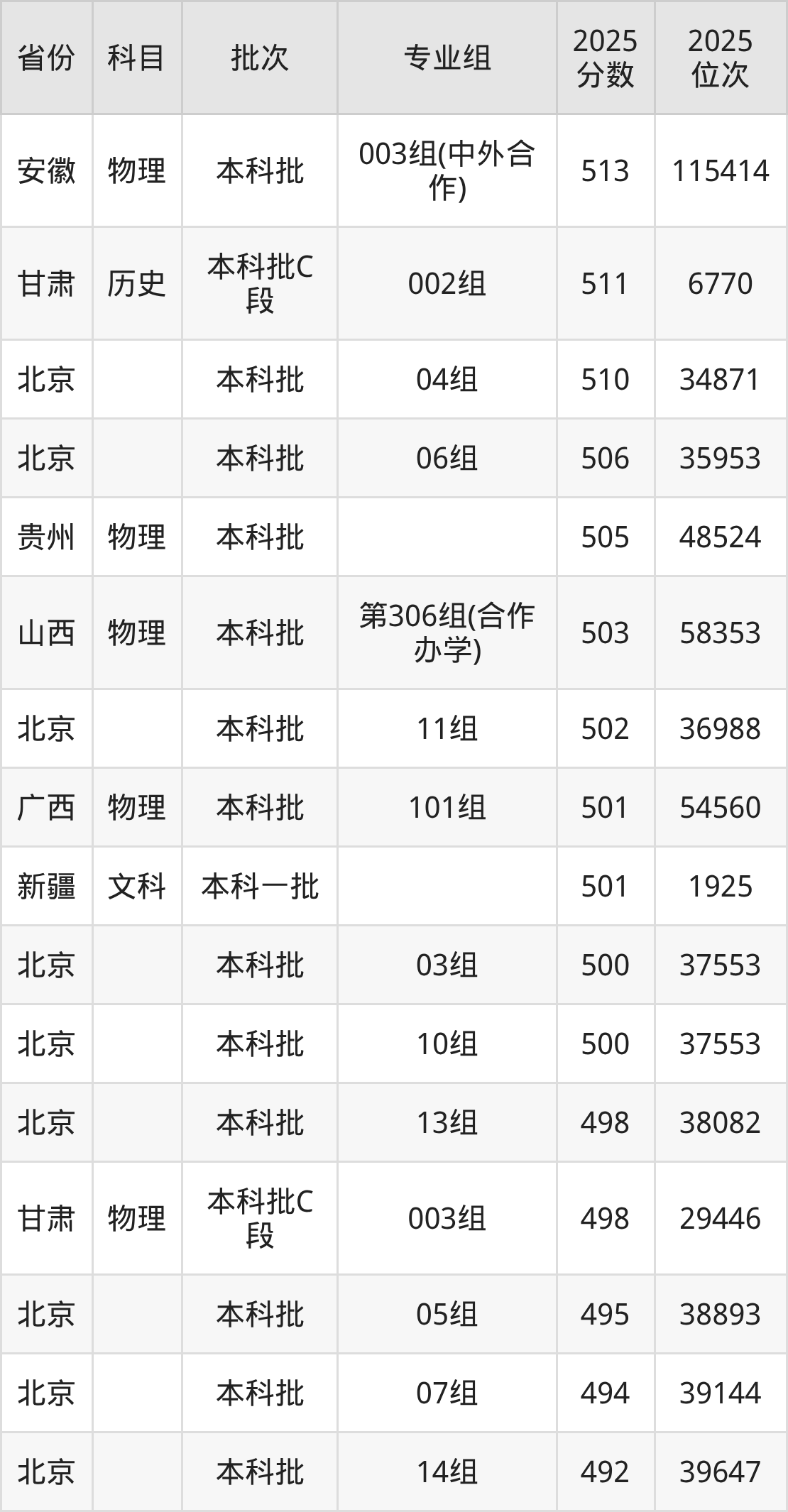 下面是2025年北京联合大学在全国各省录取最低分数据及位次,各位考生也可作为一个参考。