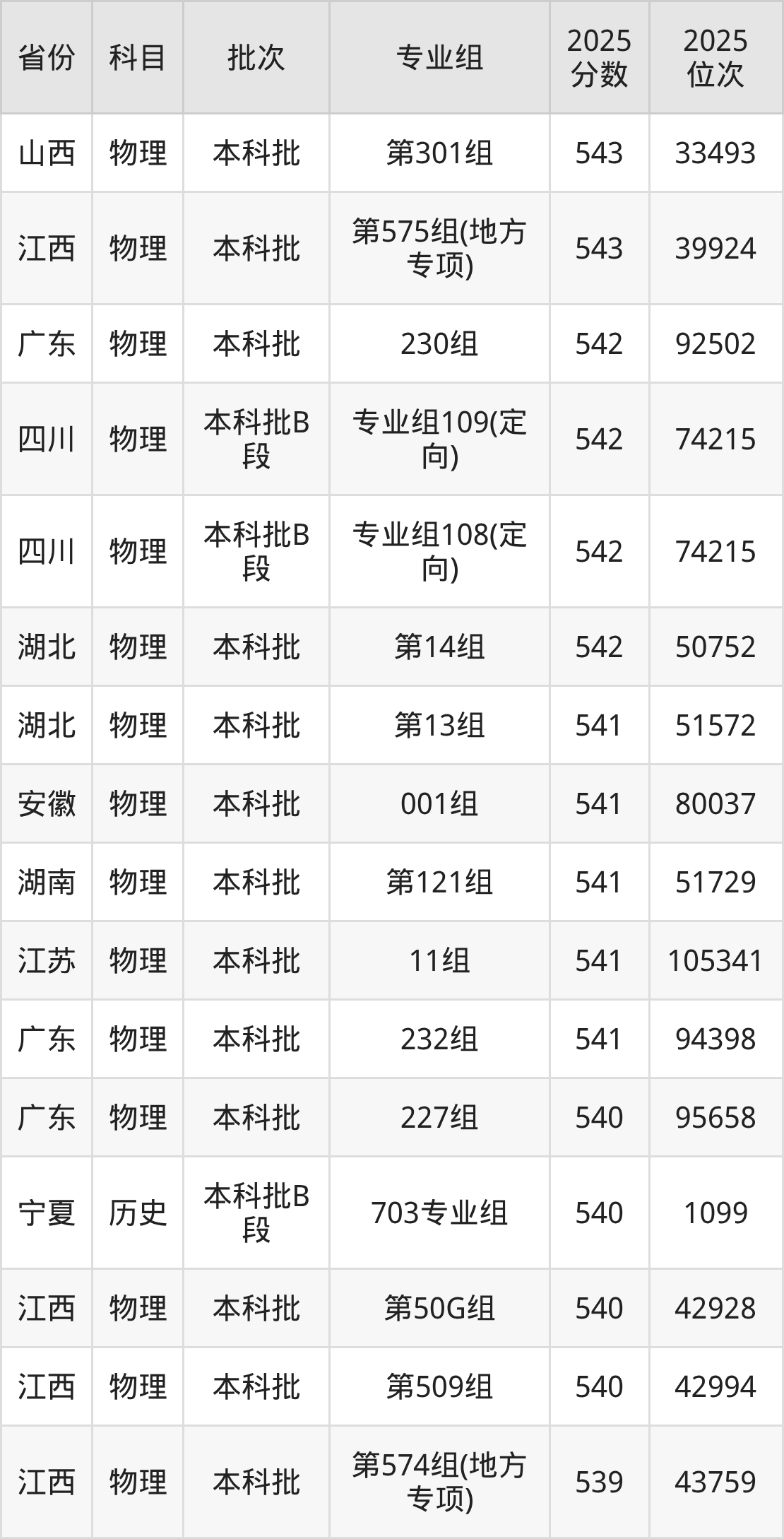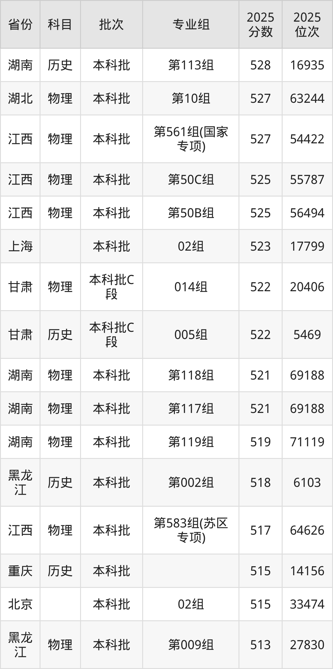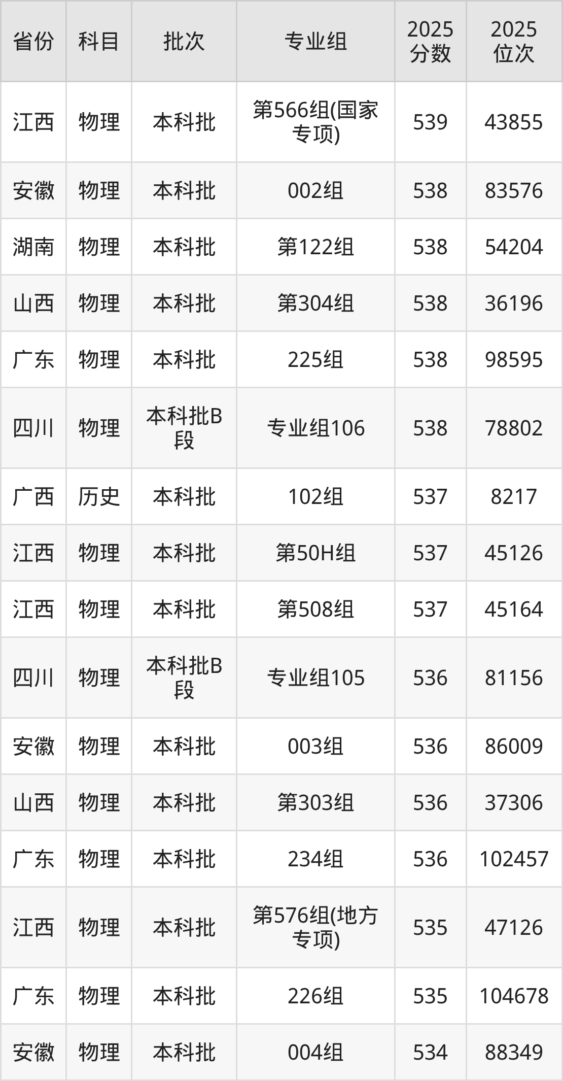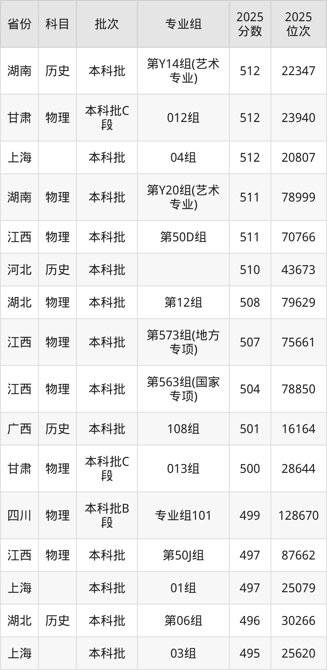 参考2025年山东省高考招录数据,按照分数线从高到低依次为大家展示江西师范大学各个专业录取分数线。