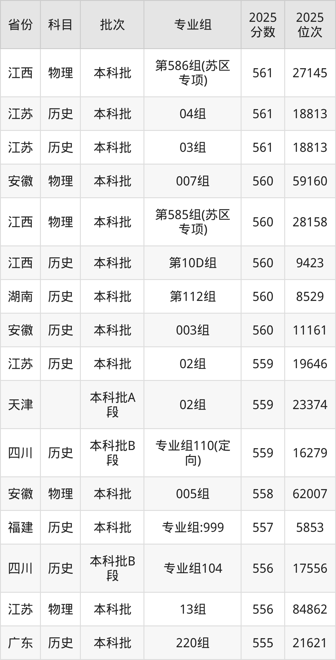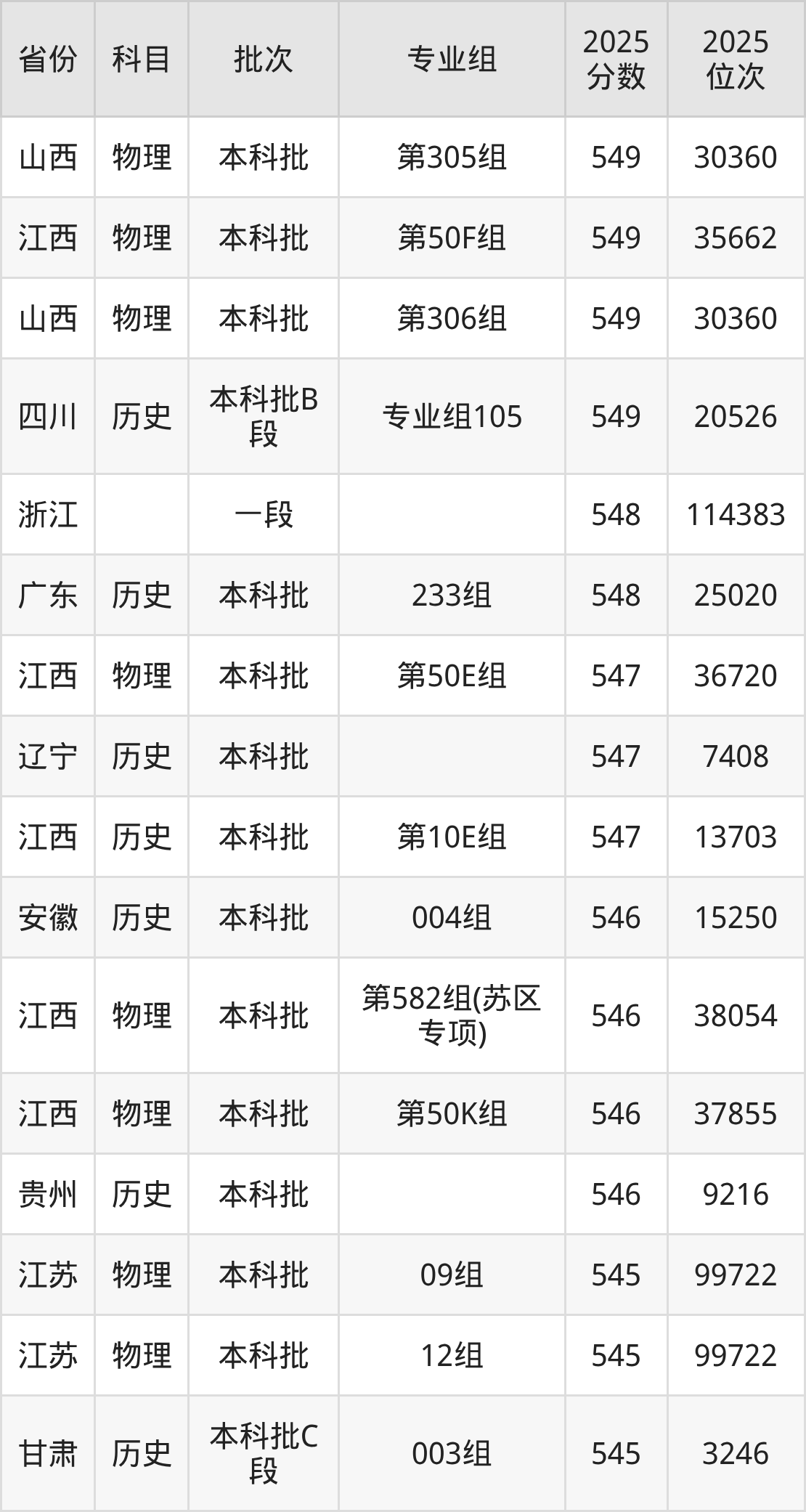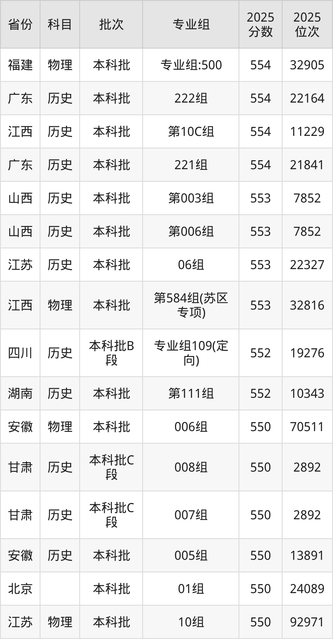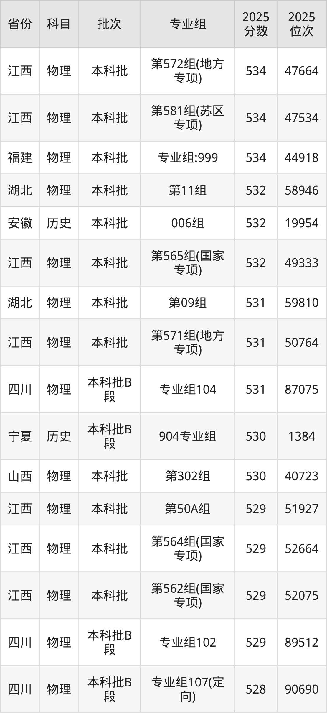 参考2025年山东省高考招录数据,按照分数线从高到低依次为大家展示江西师范大学各个专业录取分数线。