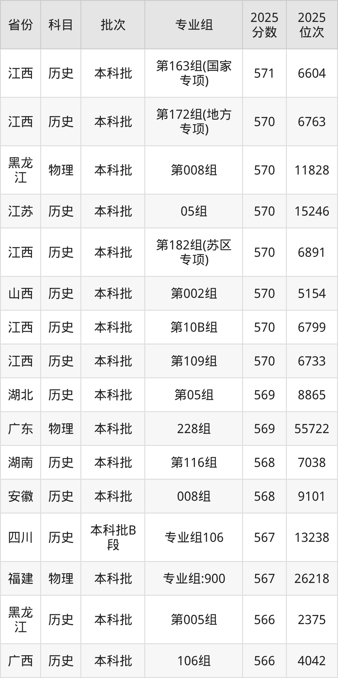 下面是2025年江西师范大学在全国各省录取最低分数据及位次,各位考生也可作为一个参考。