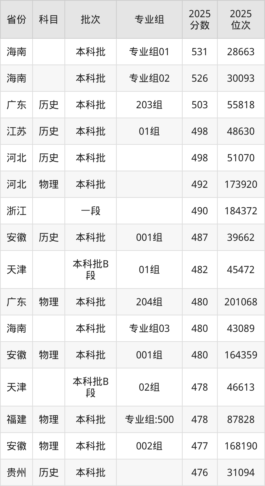 8、旅游管理:490分、位次210295名;