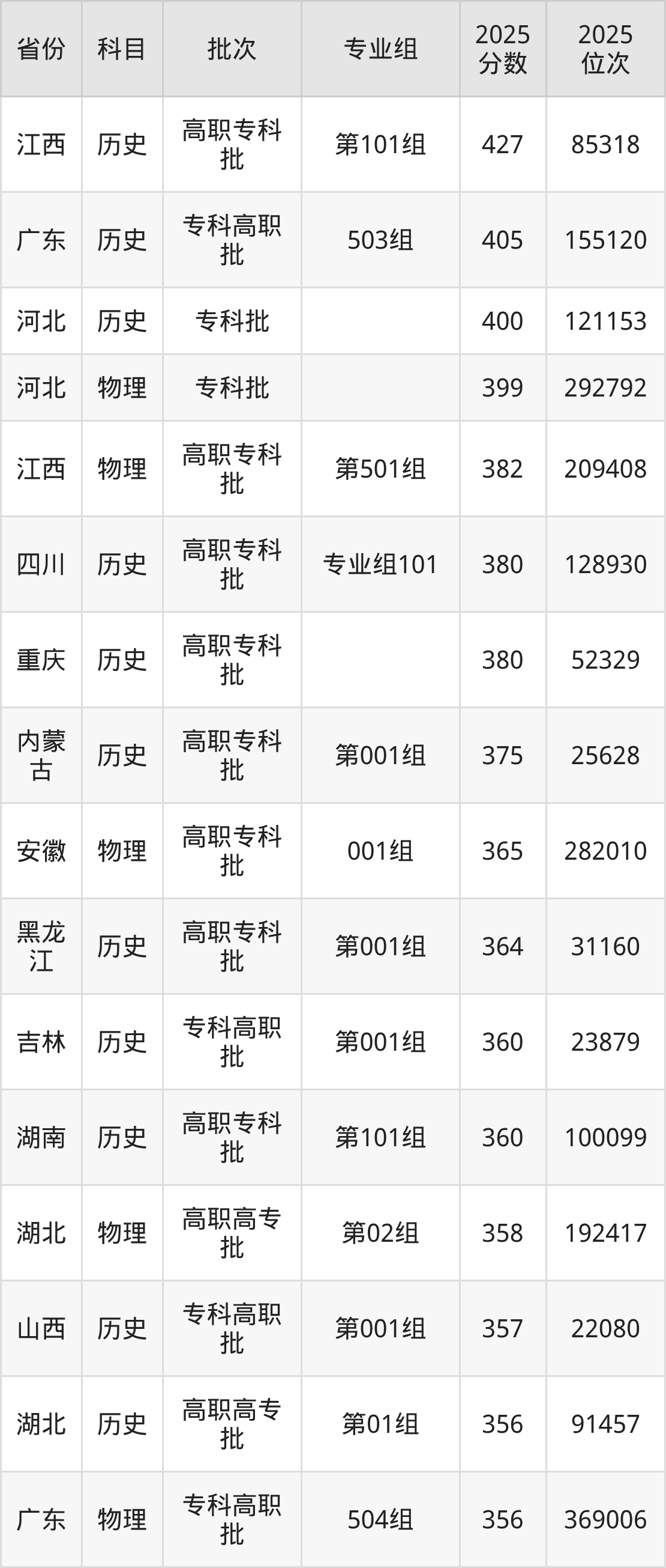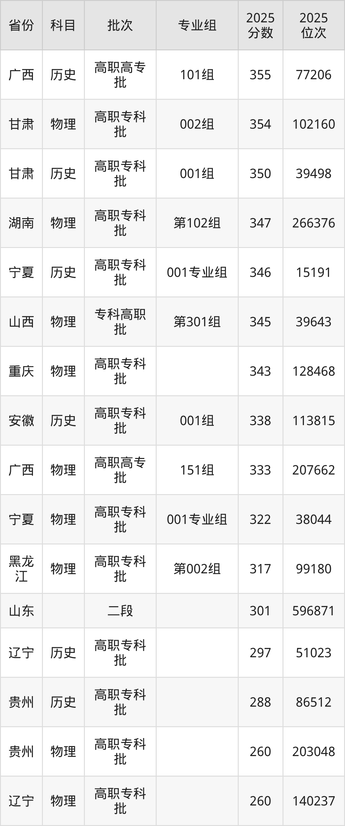 参考2025年山东省高考招录数据,按照分数线从高到低依次为大家展示安阳职业技术学院各个专业录取分数线。