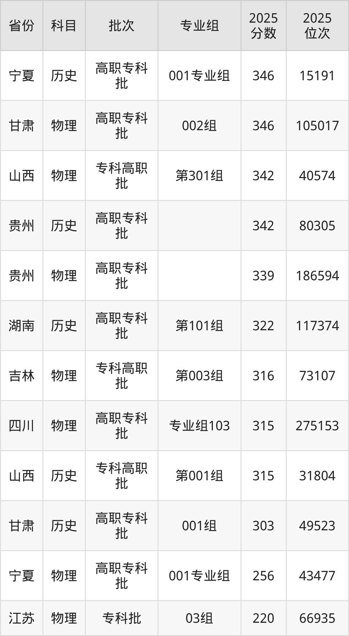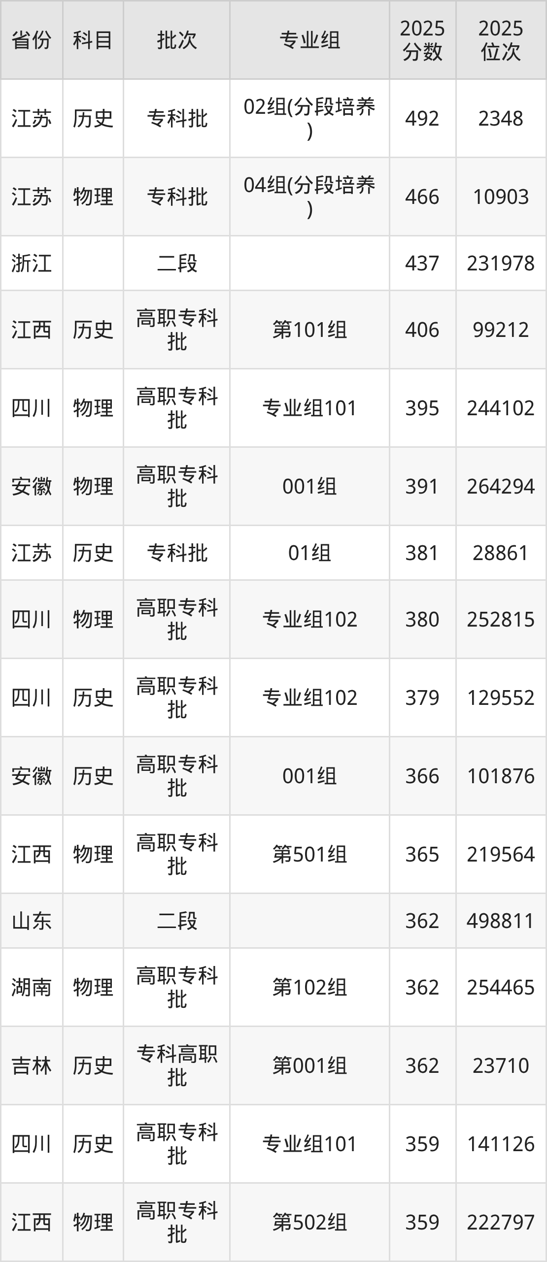 下面是2025年常州纺织服装职业技术学院在全国各省录取最低分数据及位次,各位考生也可作为一个参考。
