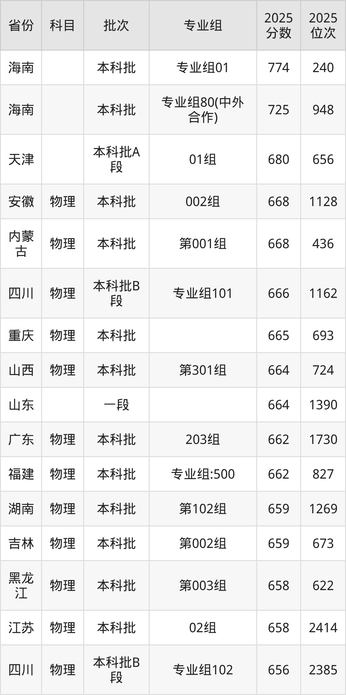 参考2025年山东省高考招录数据,按照分数线从高到低依次为大家展示哈尔滨工业大学(深圳)各个专业录取分数线。