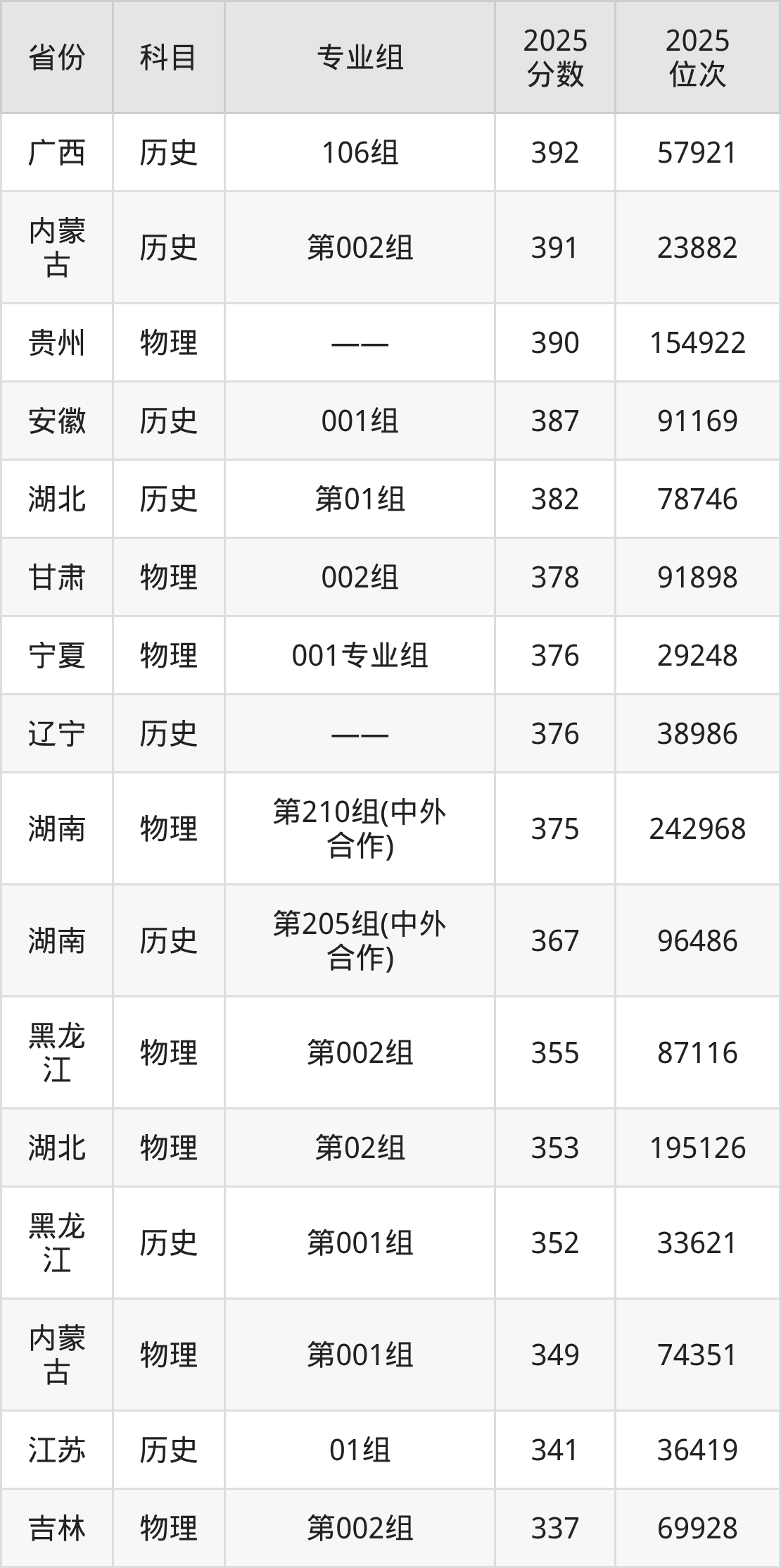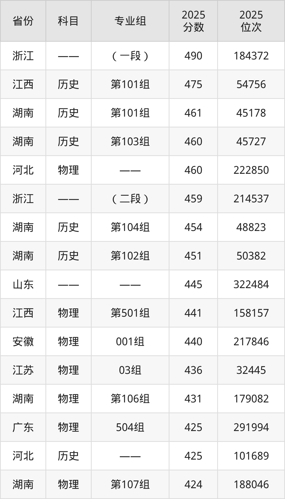 2025年湖南工业职业技术学院全国录取分数线285分到490分,录取最高在浙江、录取最低在甘肃(历史类001组)。