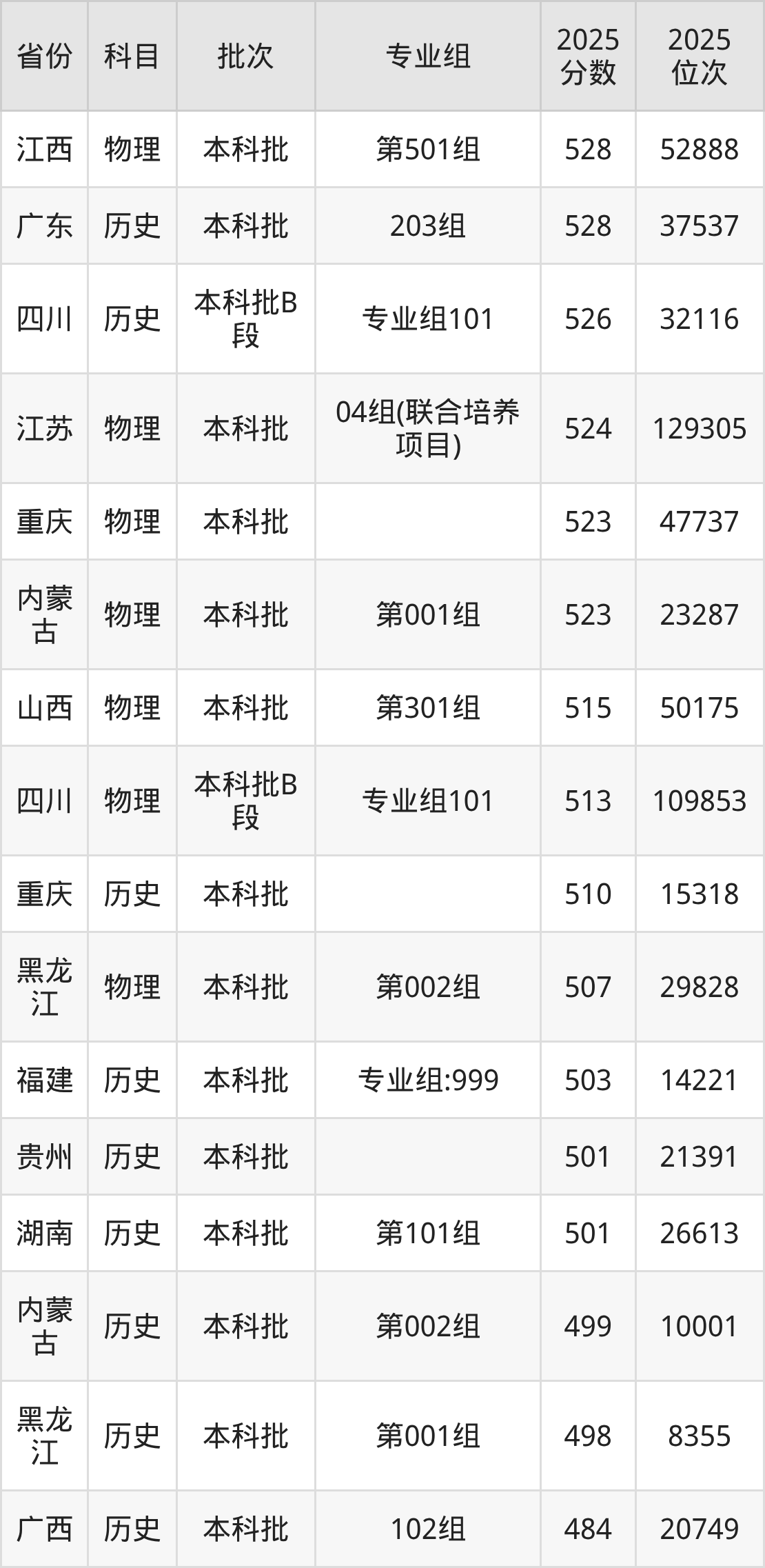 下面是2025年南京工业职业技术大学在全国各省录取最低分数据及位次,各位考生也可作为一个参考。