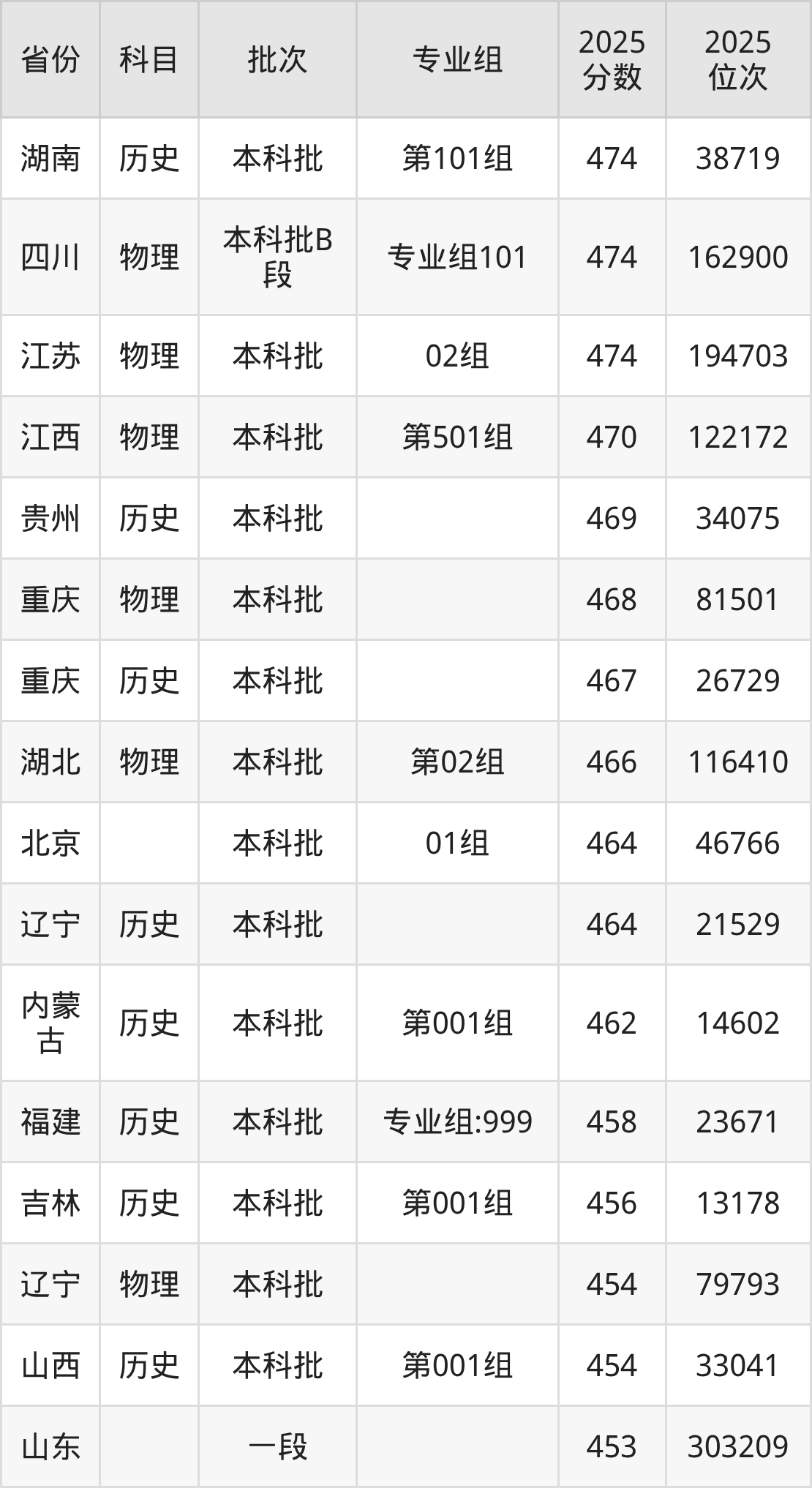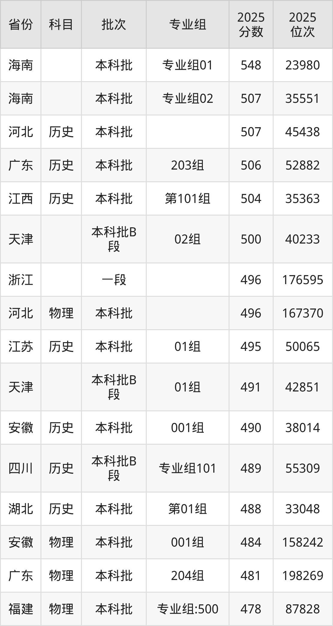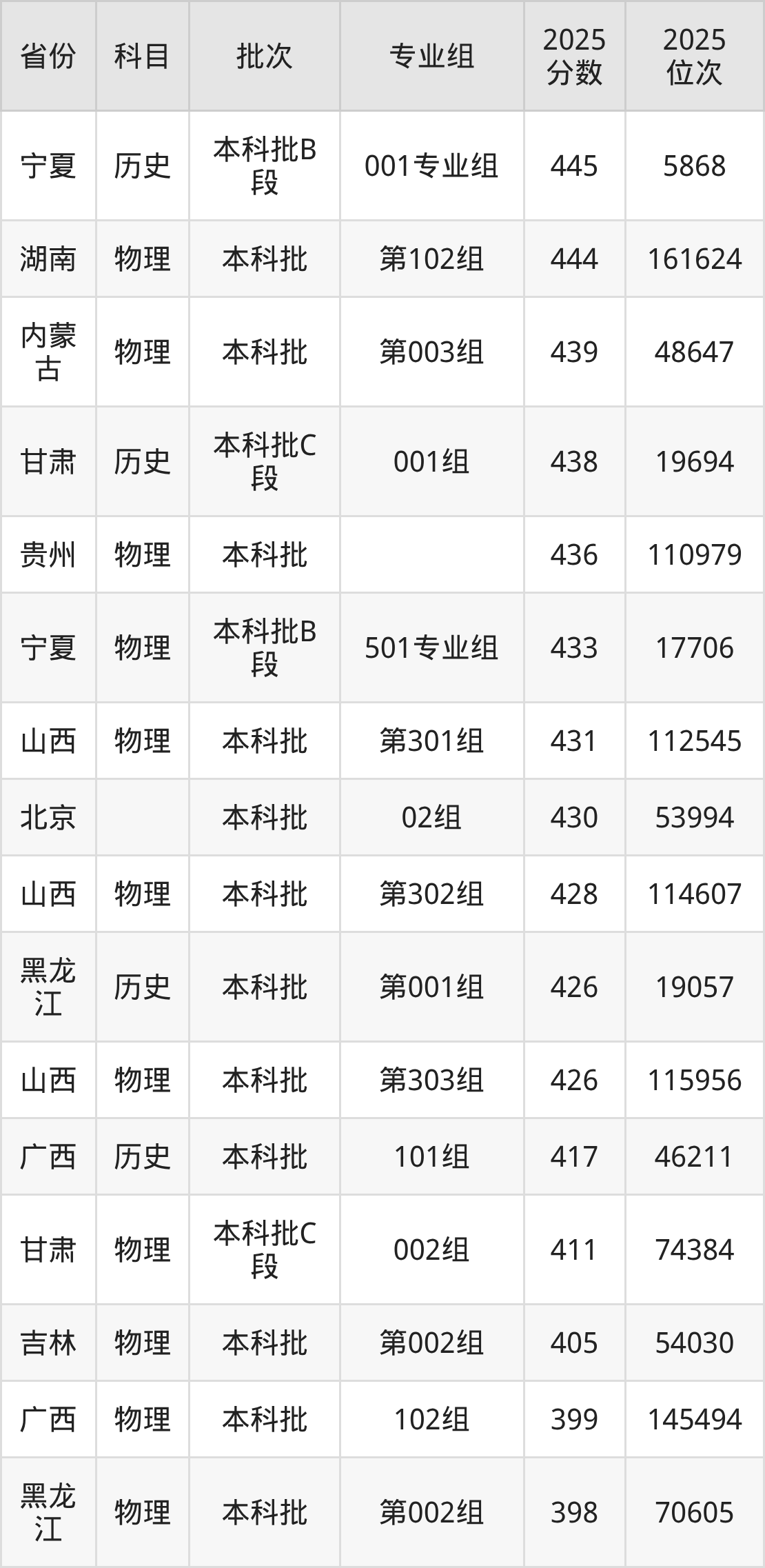下面是2025年山西晋中理工学院在全国各省录取最低分数据及位次,各位考生也可作为一个参考。